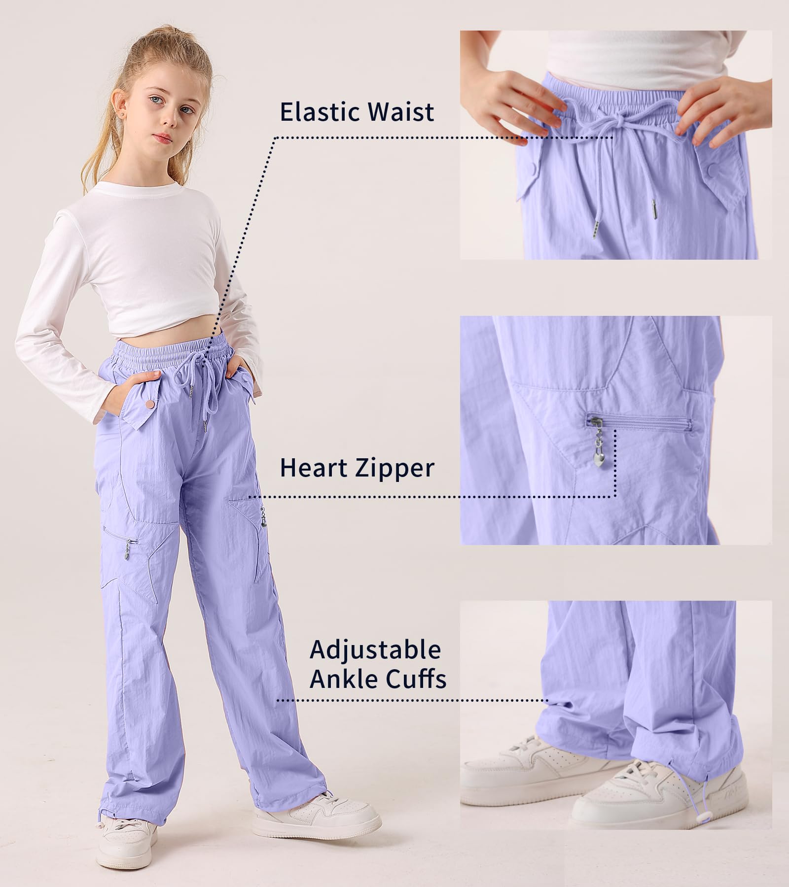 Waterproof Fabric: Girls cargo pants are made of special water repellent polyester fabric, which does not fade and is very durable. They are light and comfortable to wear, meeting the needs of girl's daily school and outdoor activities wear