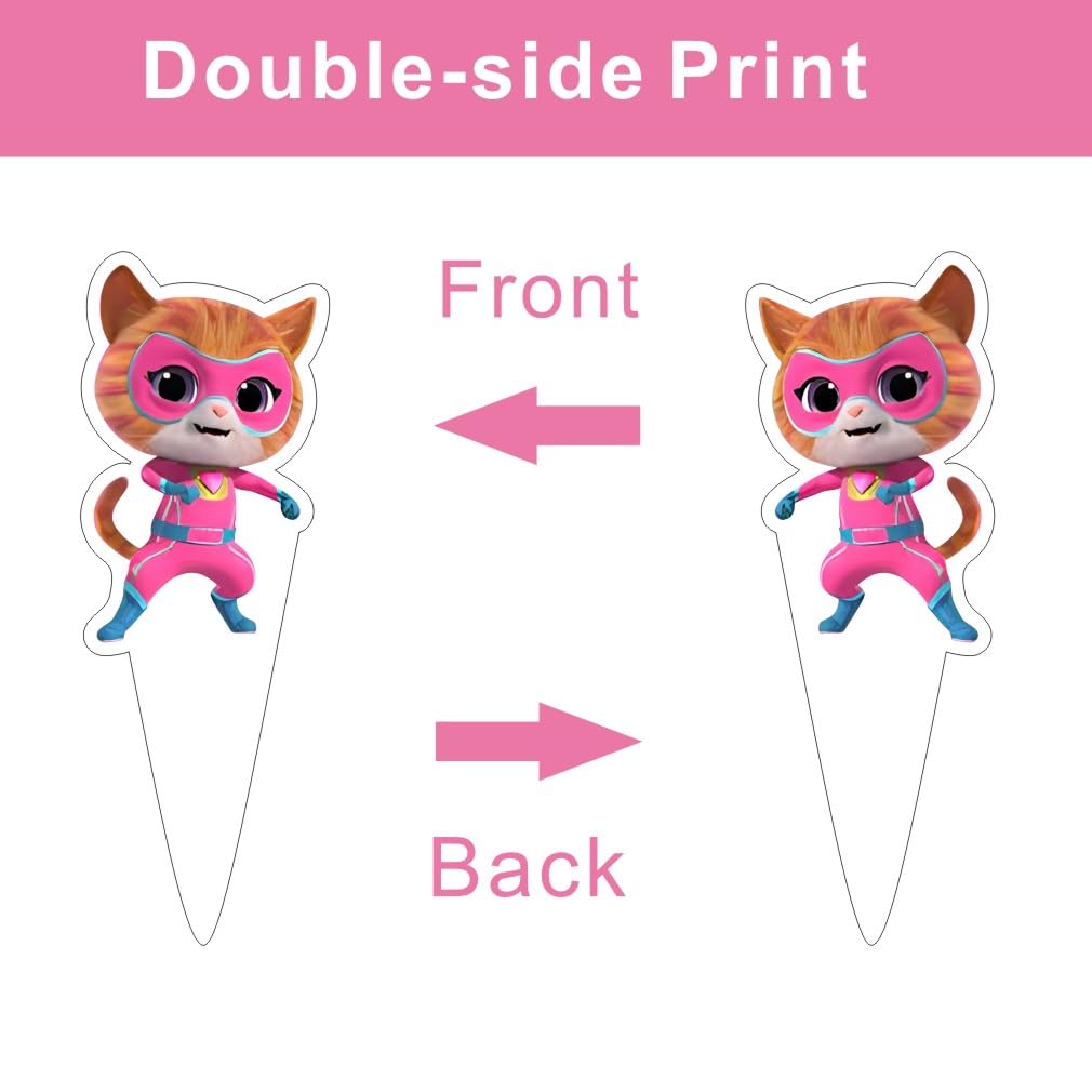 【HIGH QUALITY】:Our Super Cats themed cake decorations are made of high-quality food-grade cardstock, food-grade toothpick sticks, safe and environmentally friendly materials, non-toxic, lightweight, and not easy to break which can be applied safely! The printed pattern is bright and clear, movie classic characters' image is vivid. Exquisite birthday cake topper will light up your party and bring you and your kids a different party.