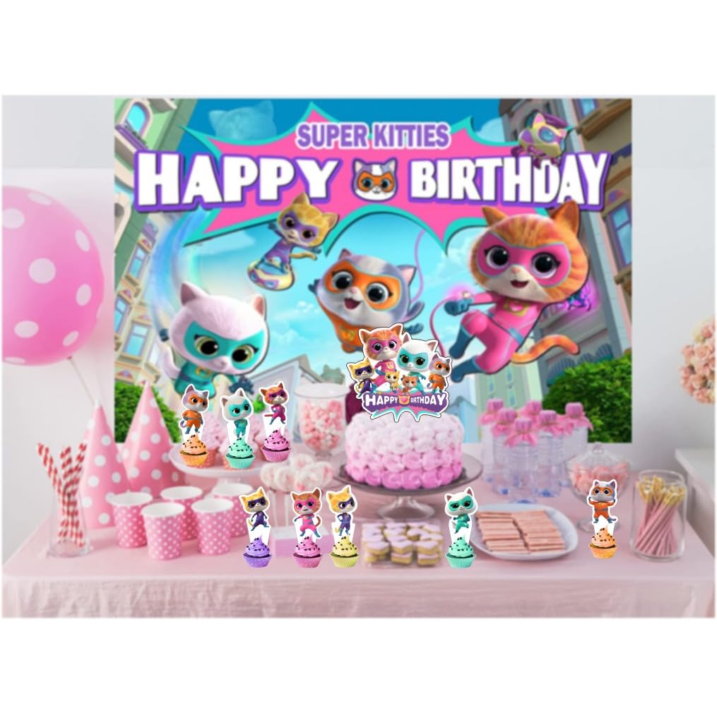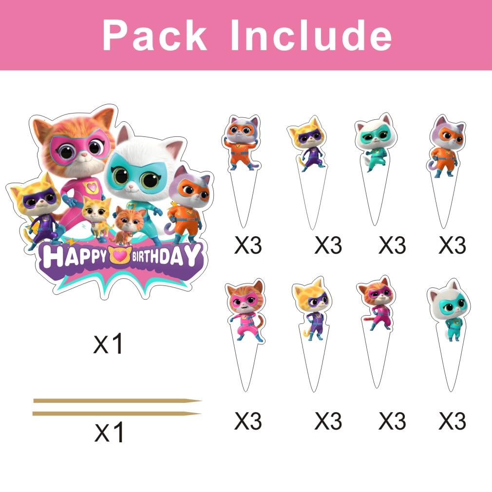 25pcs Super Cats Cake Decorations with 24pcs Cupcake Toppers, 1pcs Cake Topper for cats Birthday Party Supplies