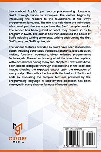 Do you want to develop iPhone apps but don’t know where to start? If you want to learn Swift programming from Scratch, this short book is for you. Learn Swift for iPhone iOS development, no programming development experience is required. Download your copy NOW!! Book Objectives This book is about Swift programming. The following are the objectives of the author: To familiarize you with the basics of Swift programming language. To equip you with Swift programming skills, both beginner and advanced skills. To help you understand the difference between Swift and Objective-C. To help you appreciate the power of Swift as a programming language for the development of mobile applications. Who this Book is for? The author intends to benefit any of the following groups of people: Anybody who wants to learn basic Swift programming skills. Anybody who needs to advance their Swift programming skills. Anybody who needs to learn iOS app development for iOS 9 andabove. Professors, lecturers or tutors who are looking to find better ways to explain Swift programming to their students in the simplest and easiest way. Students and academicians, especially those focusing on Swift programming, computer science and software development. Requirements The author expects you to have a computer installed with Mac OS X. If you don’t have a MacBook, you can consider creating a Mac OS X virtual machine on your computer. What is inside the book? SWIFT BASICS SWIFT DATA TYPES SWIFT VARIABLES AND CONSTANTS SWIFT OPERATORS DECISION MAKING SWIFT LOOPS SWIFT FUNCTIONS SWIFT CLASSES SWIFT METHODS SWIFT ARRAYS SWIFT DICTIONARY SWIFT SETS SWIFT CLOSURES From the back cover The author begins by introducing the readers to the foundations of the Swift programming language. The aim is to help them the individuals who developed the language, how the Swift compiler works. The reader has been guided on what they require so as to program in Swift. The author has then discussed the basics of Swift including writing comments, writing and running the first Swift program, Swift syntax, etc. The various features provided by Swift have been discussed in depth, including data types, variables, constants, loops, decision making, functions, operators, object oriented programming features, etc. The author has organized the book into chapters, with each chapter having many sub-chapters. Swift codes have been added, alongside thorough explanations of the code and images showing the expected output upon the execution of every script. The author begins with the basics of Swift and ends by discussing the complex features provided by the programming language. A step-by-step approach has been employed in every chapter for ease of understanding.