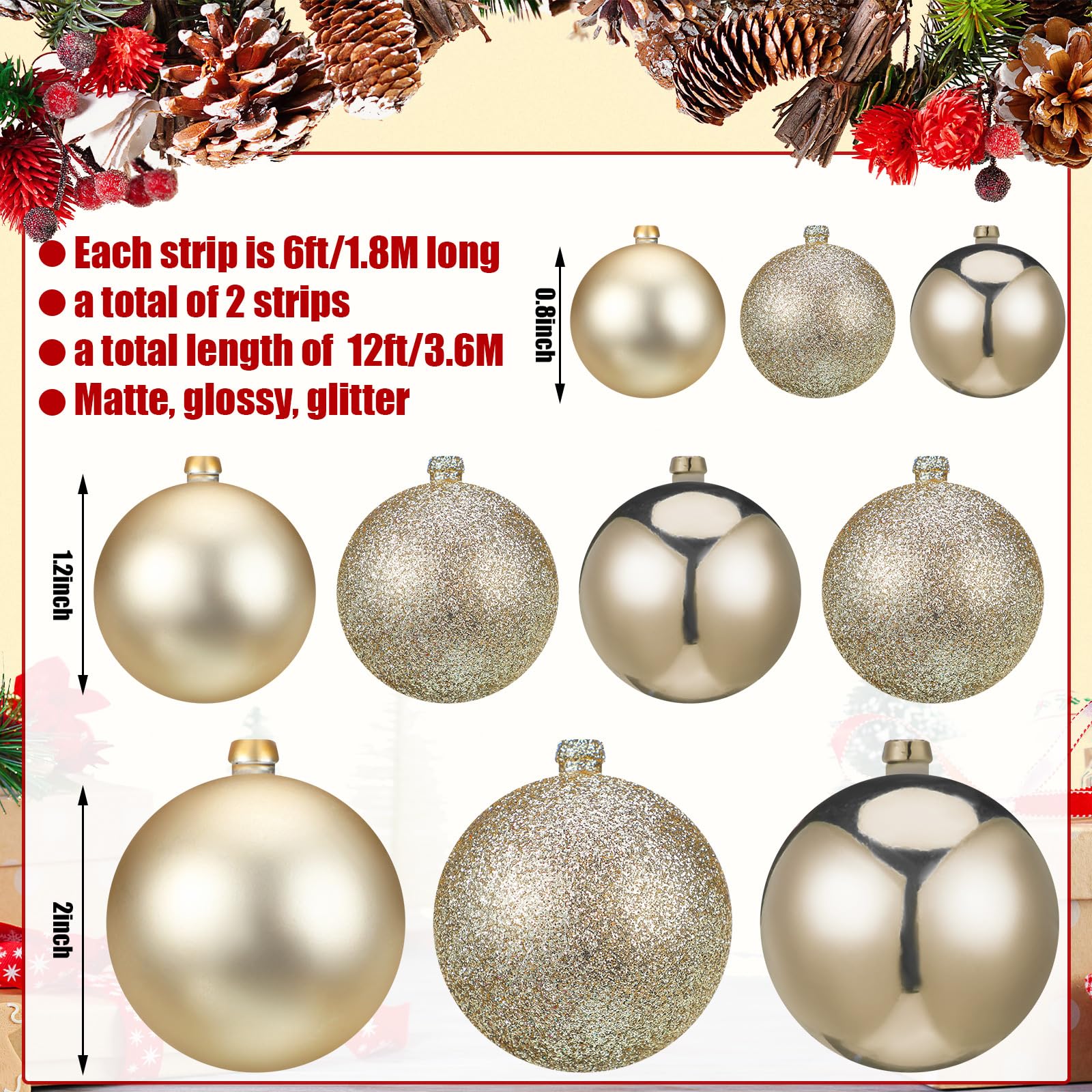 Features: These Christmas garland balls make for the ideal gifts during the holiday season. Their exquisite design and quality construction stand out, bringing the charm of Christmas to your home. The lively champagne gold color of our Christmas ball garland ball ornaments will blend well with your Christmas themes, amplifying the festive cheer. Their vibrant color will create a heartwarming Christmas scene. Specifications: Material: plastic Color: champagne gold Size: approx. 6.6 ft in length of each garland Package includes: 2 Pcs Christmas bulb garlands Notes: Manual measurement, please allow slight errors on size. The color may exist a slight difference due to different screen displays.