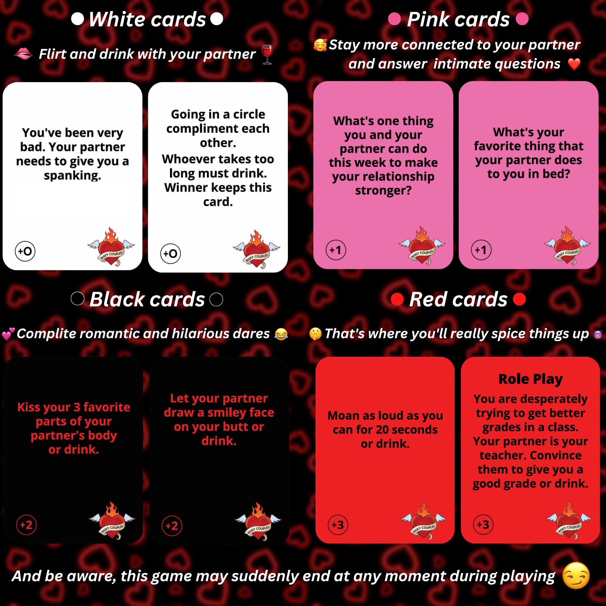 🤩TWO WAYS TO PLAY - You can play this game only with your significant other or teamed up and compete against other couples. The first couple to get 21 points - wins.