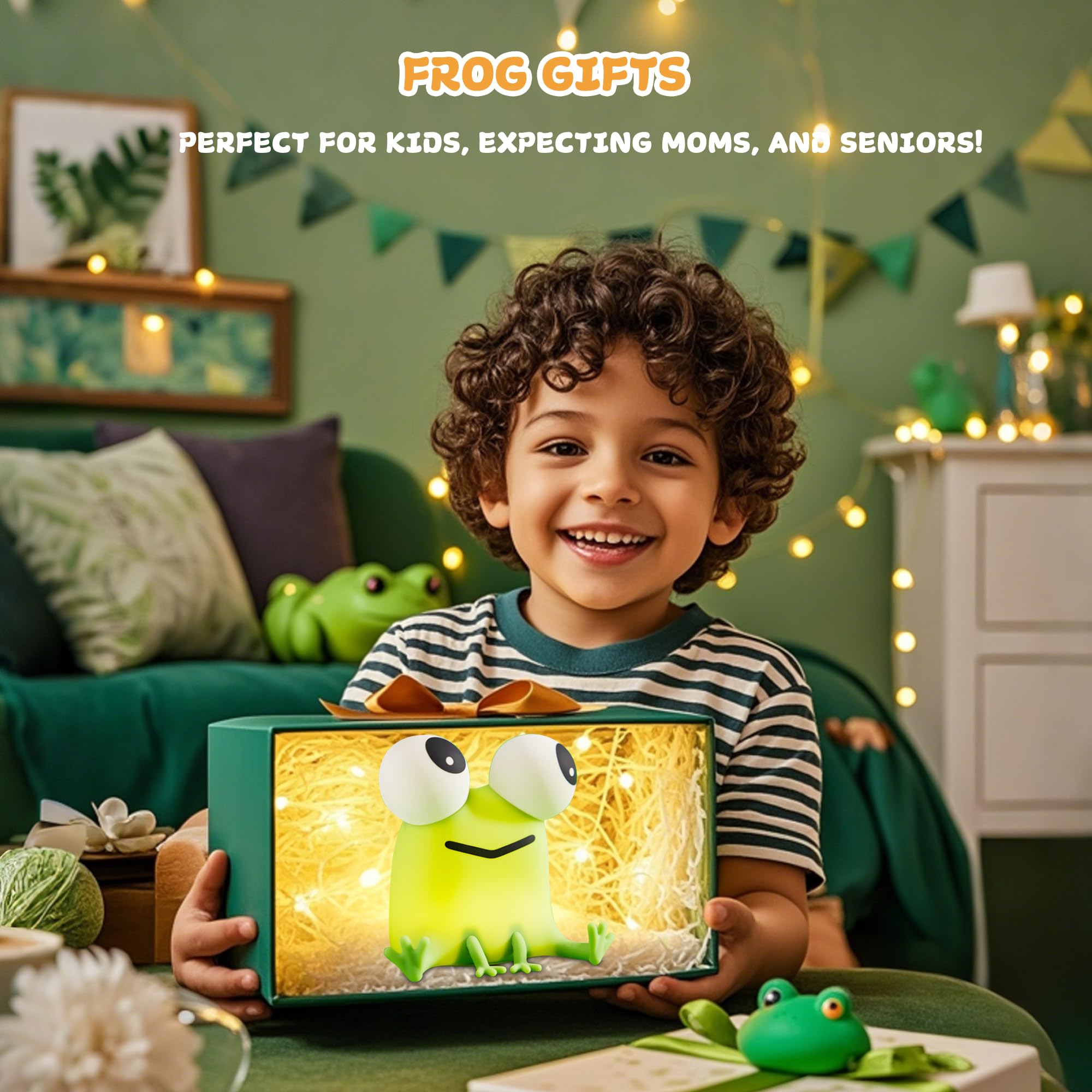 Frog Gifts &Tap Control for Easy Use Just simply gentle tap the frog lamp to turn it on/off,The responsive touch sensor ensures effortless operation, No need to fumble for switches in the dark, ideal for kids and adults alike. Perfect for friends, kids, or yourself, it’s an ideal gift for Mother's Day, Children's Day, Birthday, Christmas, Halloween, Valentine’s Day, or housewarming parties. Whether for home, office, or party decor, this adorable lamp brings joy and practicality to any space!