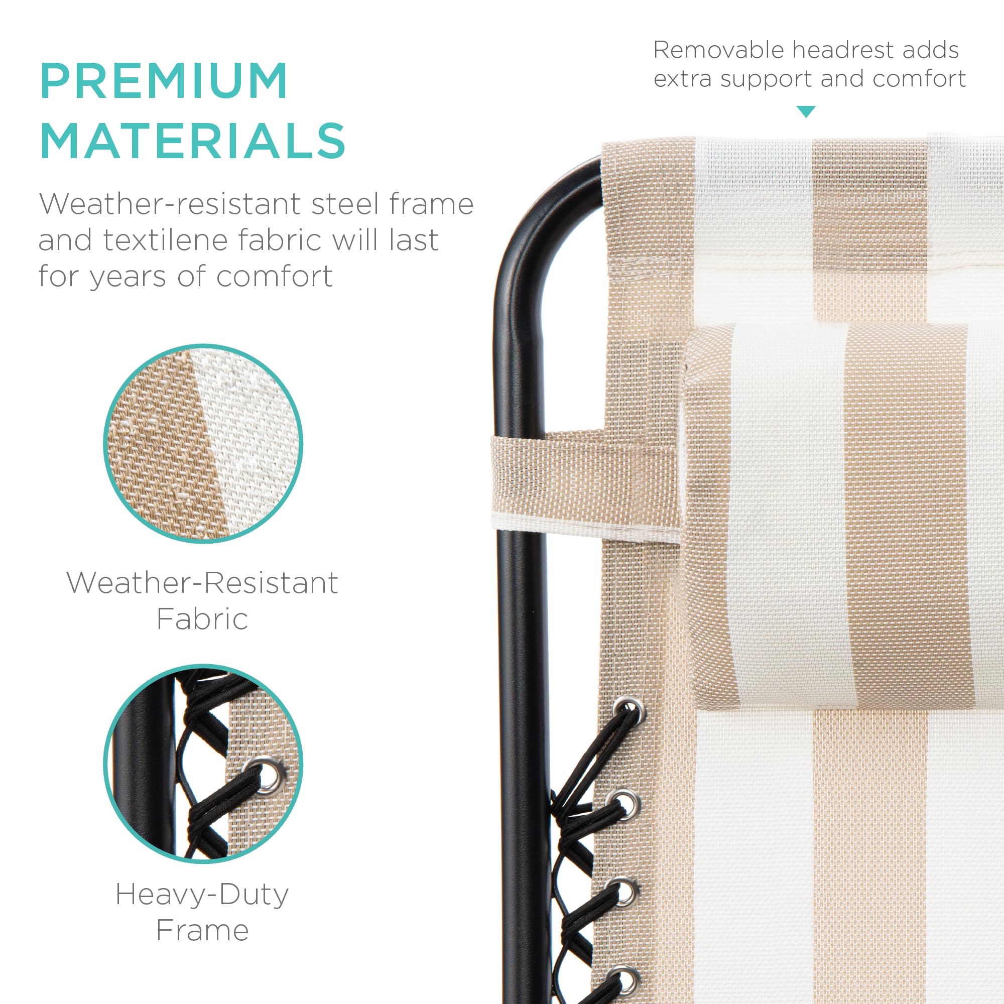 REMOVABLE, ADJUSTABLE HEADRESTS: Includes a removable, padded headrest for an extra element of adjustable comfort; OPEN DIMENSIONS: 32.5"-61"(L) x 25"(W) x 33.5"-44"(H); FOLDED DIMENSIONS: 38"(L) x 25"(W) x 6"(H); WEIGHT CAPACITY: 250 lbs.