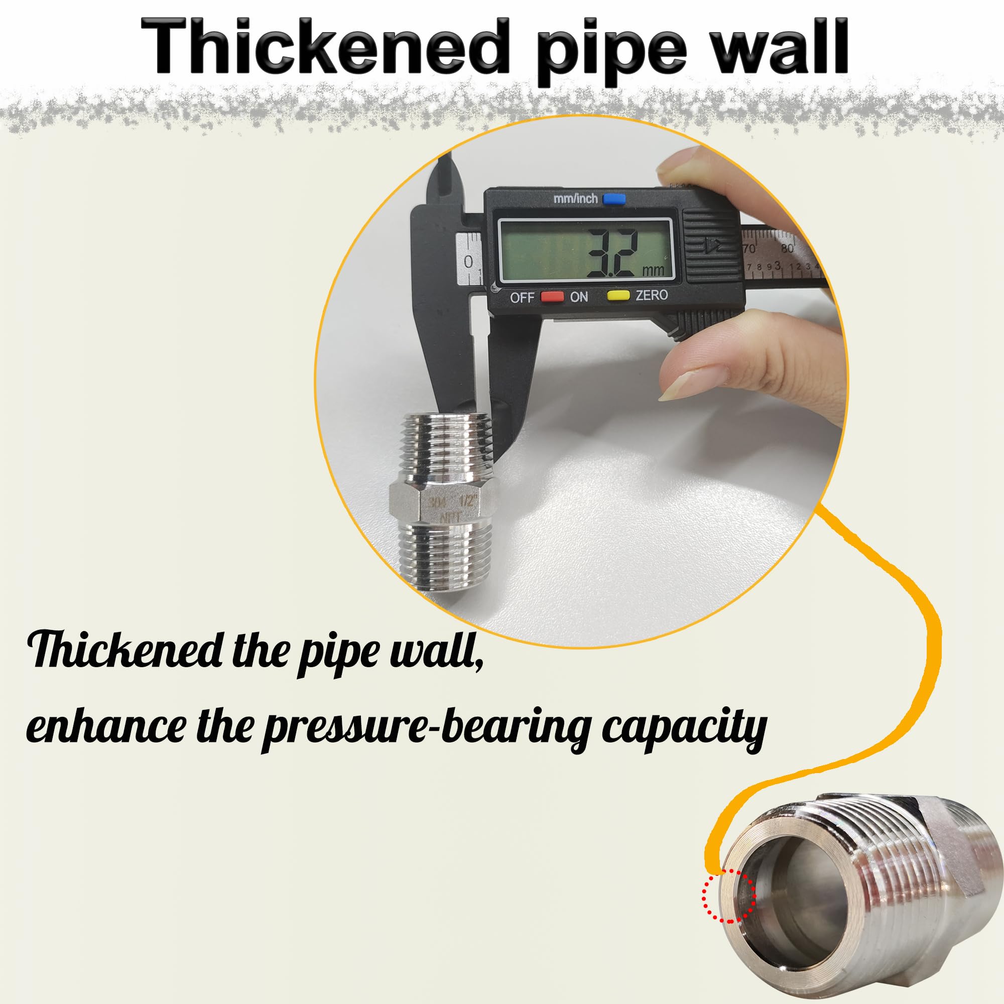 HIGH-QUALITY 304SS: Our hex nipple made of high-quality thickened 304 stainless steel, nickel and chromium elements combined, corrosion resistance, strong oxidation resistance. High abrasion resistance, high corrosion resistance, not easy to rust under humid environment.