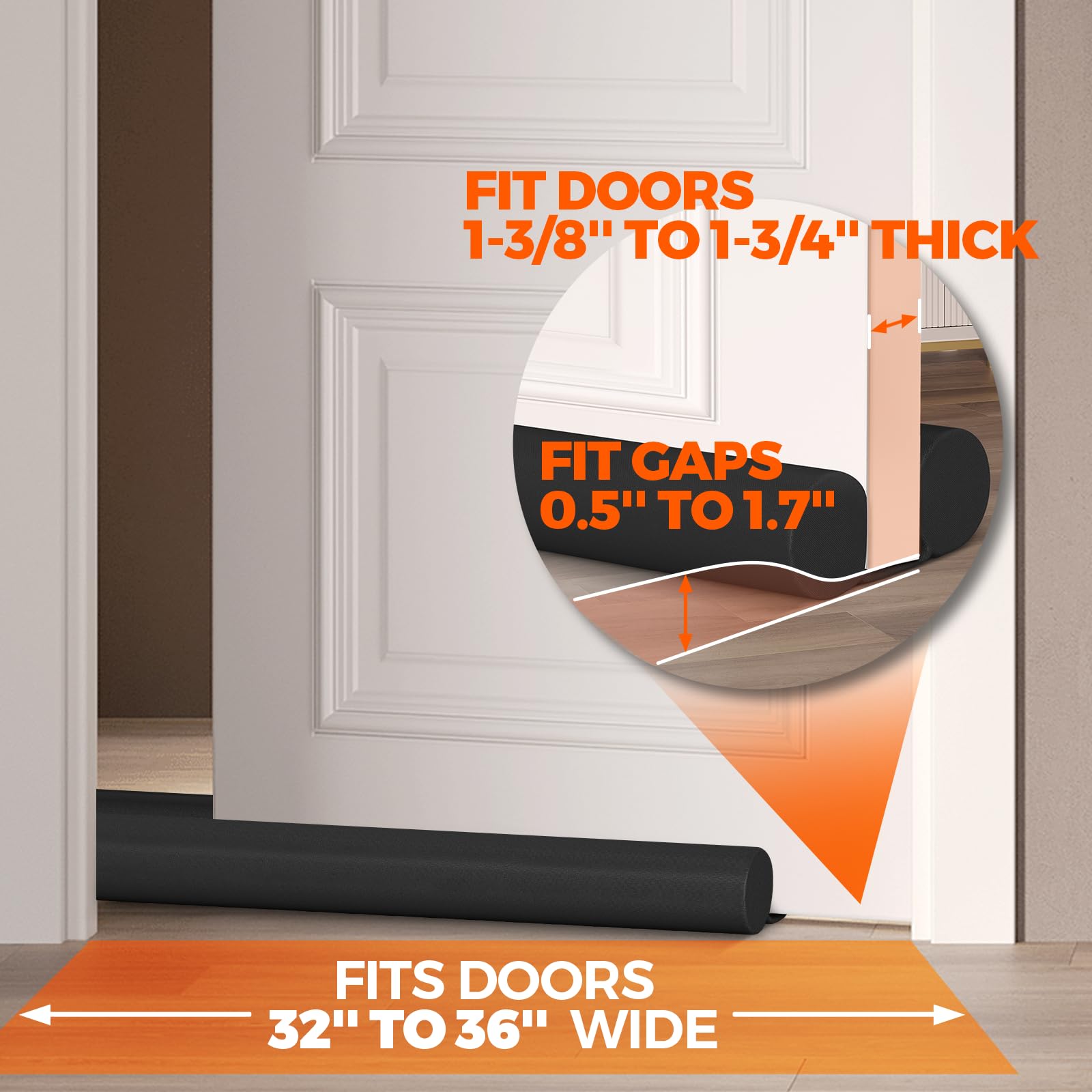 Easy to install: adjustable size for most homes; Please measure the gap and width of the door before purchasing and keep the door clean to ensure our draft stopper works as intended