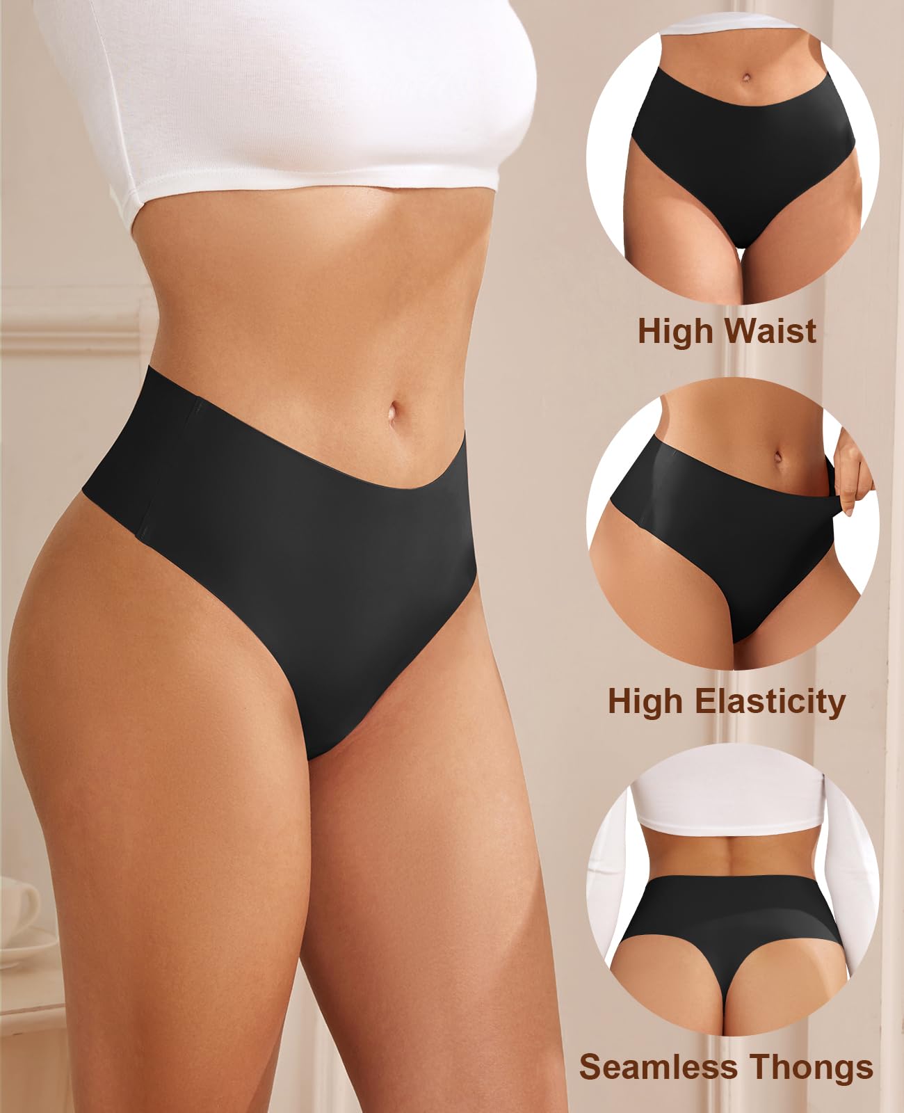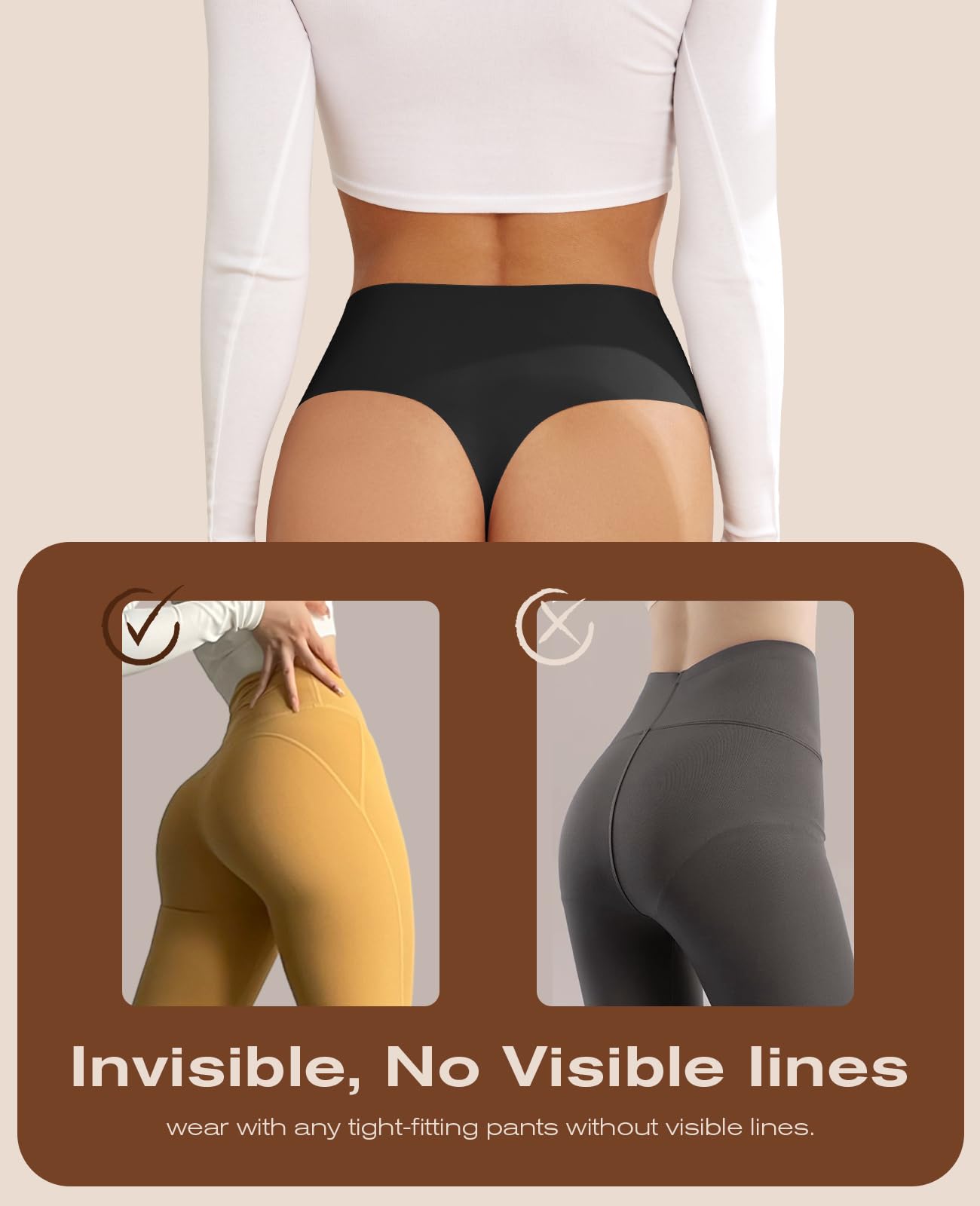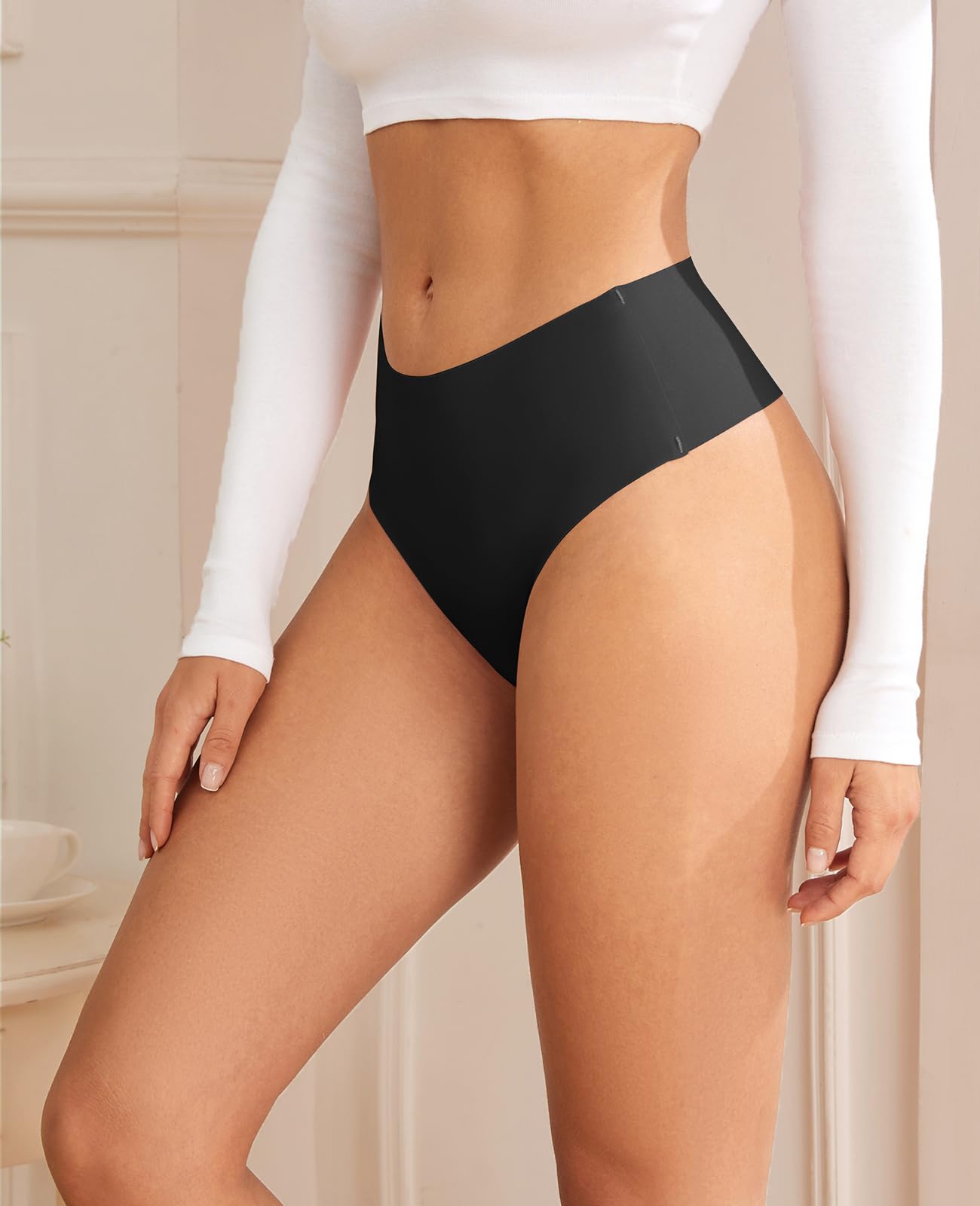 High-Waisted Elegance: Elevate your comfort with our women's underwear collection, featuring high-waisted thongs meticulously designed to stay in place, providing a seamless fit for leggings, yoga pants, jeans, and every occasion where invisibility is essential.