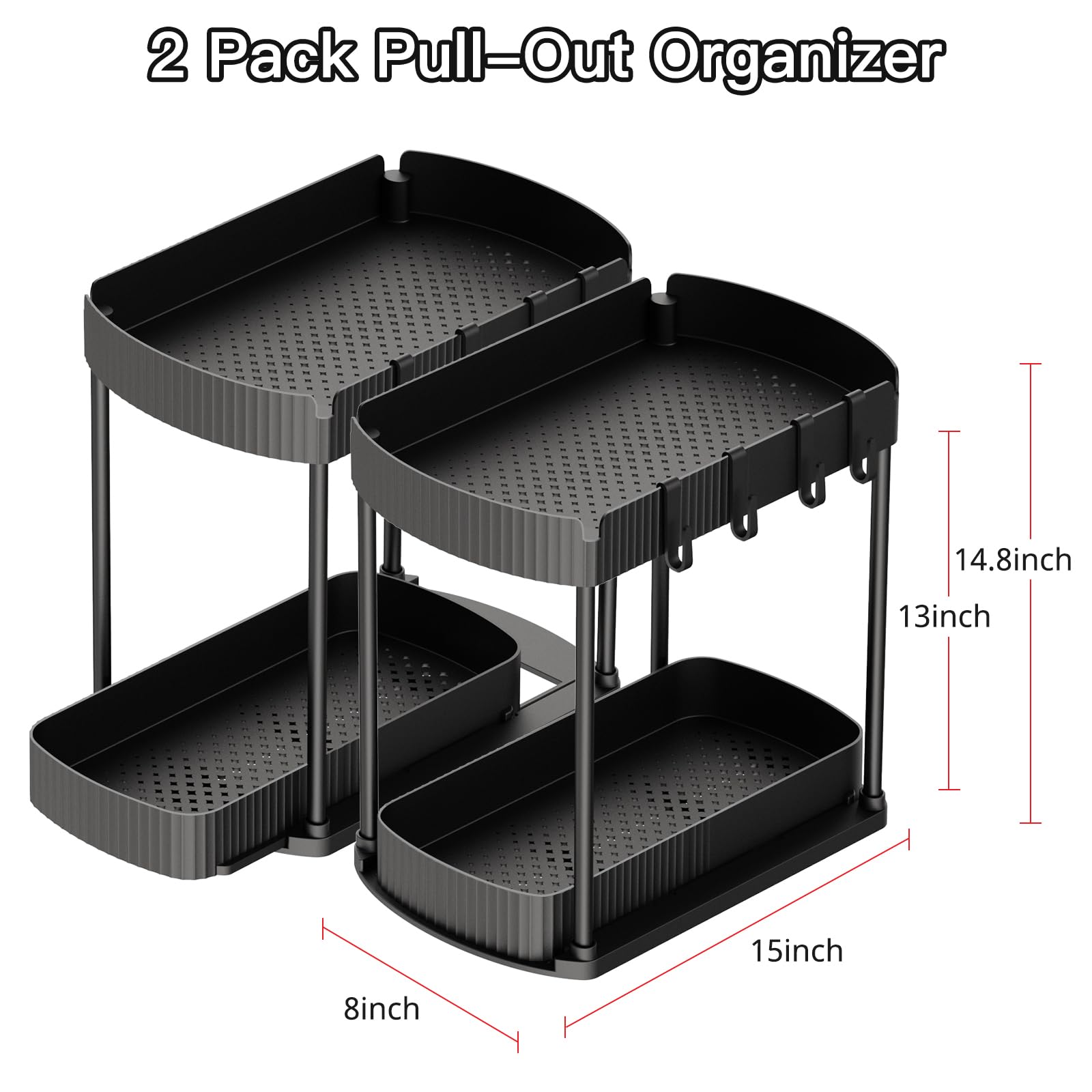 【2 Pack Value Set】Sized at 15” x 8” x 14.8” each, these organizers fit perfectly for bathroom organizers and storage, kitchen organizers and storage, under sink organizer and under cabinet storage.