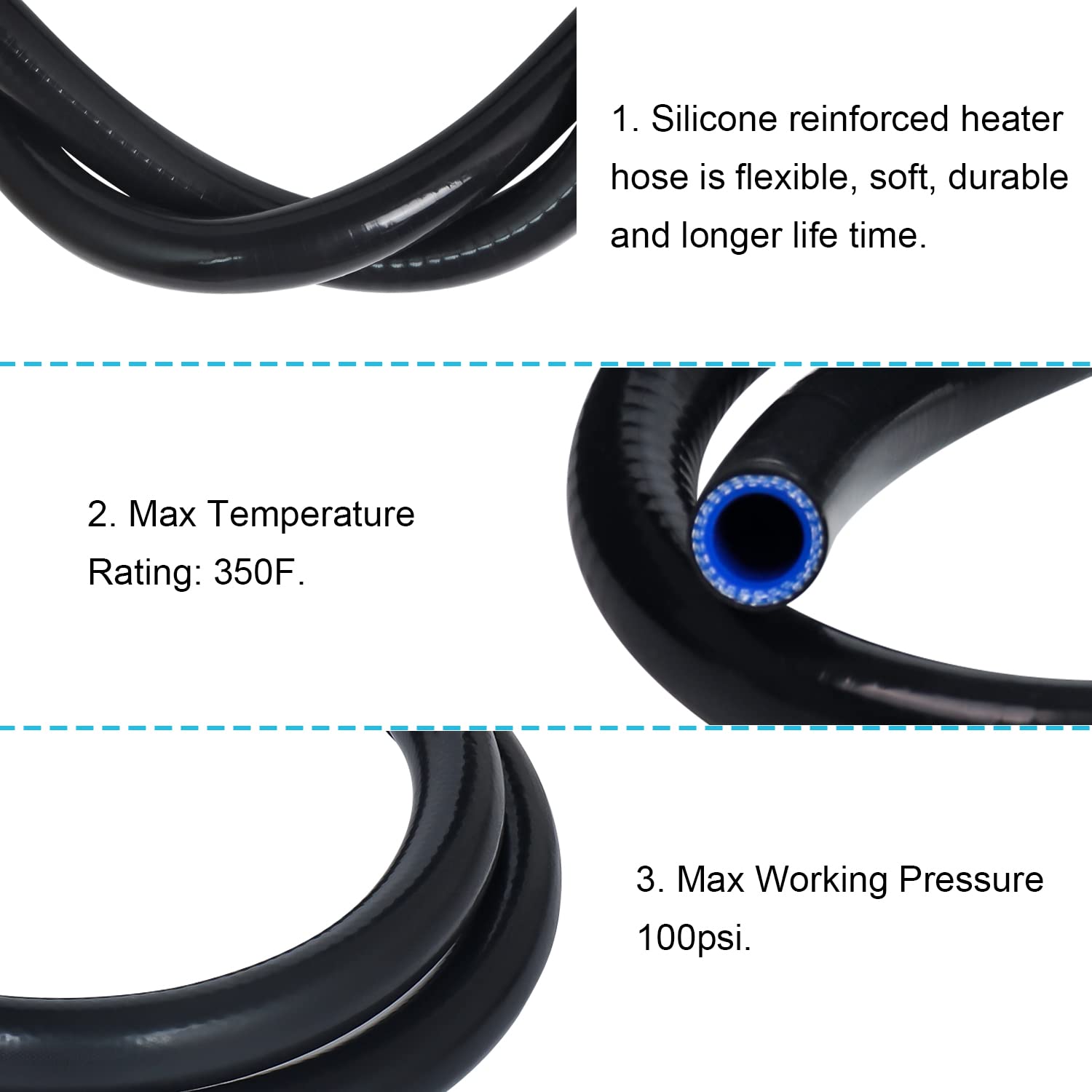 High Temp Reinforced Silicone Heater Hose 7/8"ID X 3.28 Feet per roll(1.0M),Outer Black Inner Blue ID: 22MM WALL:4MM OD:30MM Length: 1M/3.28FT Max Temperature Rating: 350F Max Working Pressure 180psi 3-Ply reinforcement construction for higher pressure resistance. Extreme Temperature Resistance with Superior Flexibility ( -65F / +350F ) More on Temp rating below. Polyster Fiber Reinforced for high pressure & resistant to coolant additives. It applies to general purpose air or water transportation, which can be used as a radiator hose, coolant hose, heater hose. This silicone hose/tube is not for Oil or Fuel. Oil will greatly reduce the lifetime of the silicone tube. Notice normal nylon fitting can not stand the temperature of engin bay for long. Please choose high temperature glass filled nylon fitting to connect this reinforced silicone heater hose.