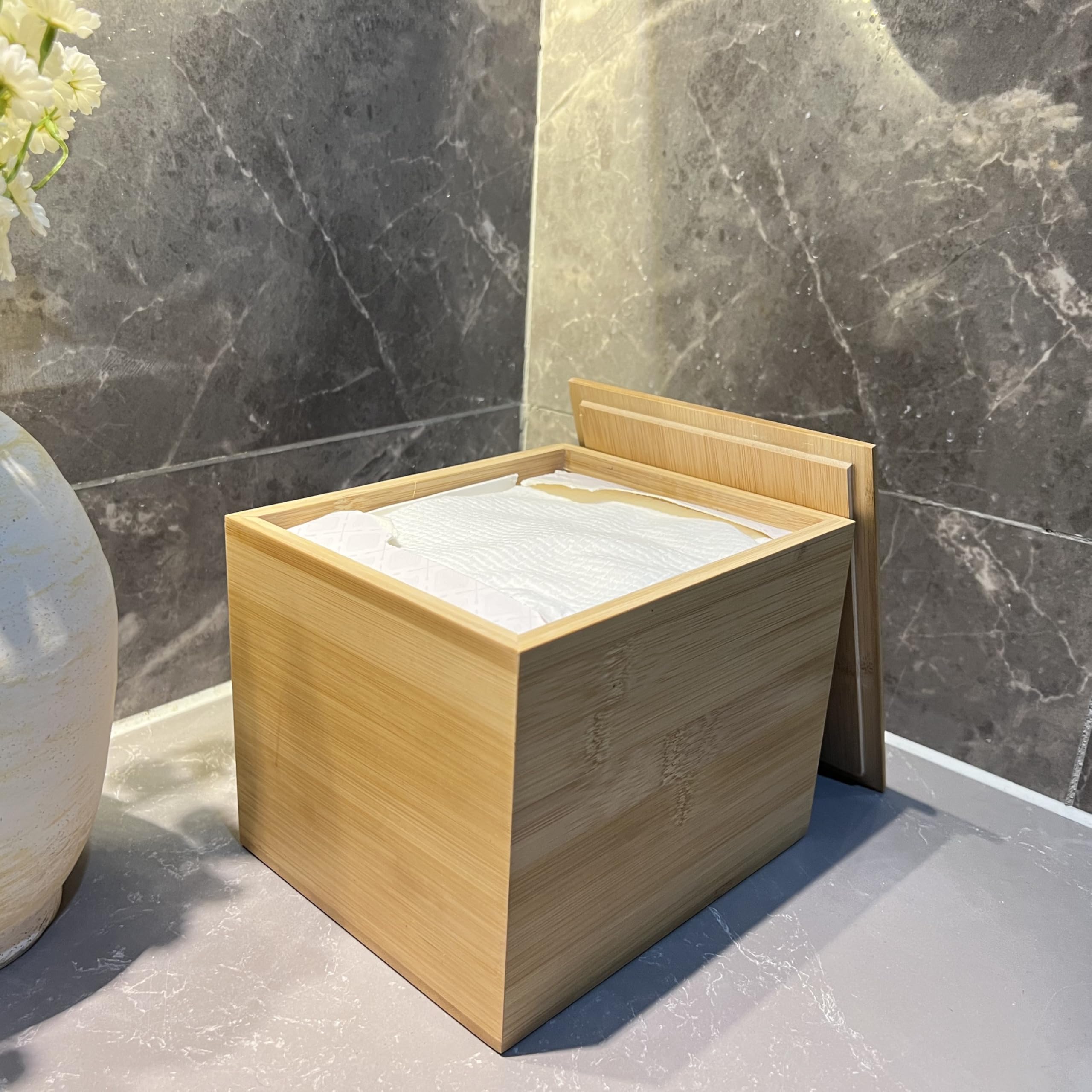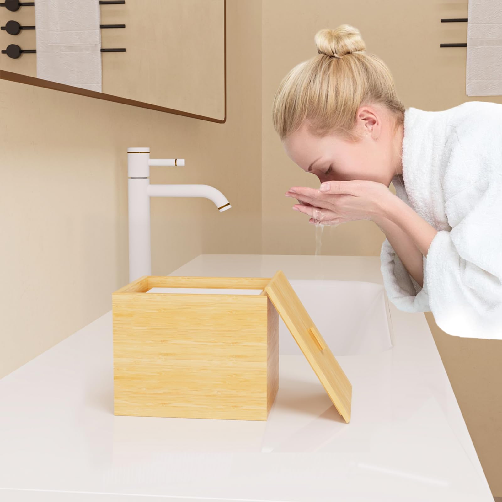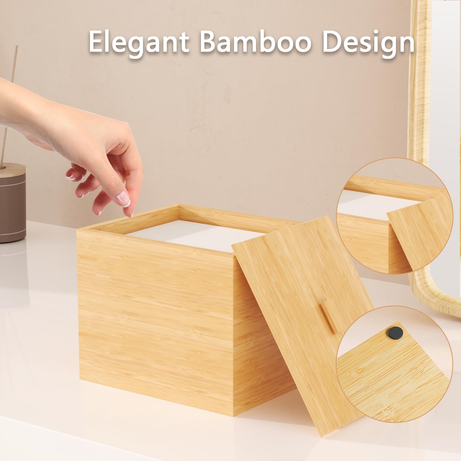 【Perfectly Sized for Convenience】: This bamboo storage box can hold up to 50 towels. With dimensions of 7.13" x 5.90" x 6.06", it provides a stylish and practical storage solution for daily use.