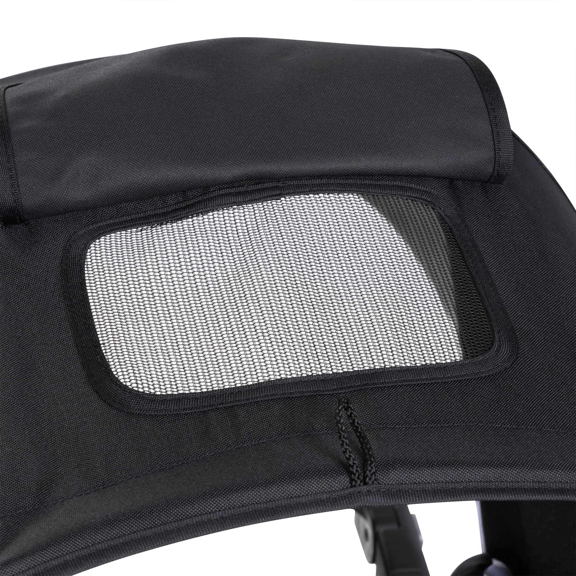 Comfort Cabin with removable deluxe fabric canopy and visor with dual-frame suspension and UPF 50 plus sun protection; Multi-position reclining padded seat; Front seat and platform weight capacity: 50 pounds each