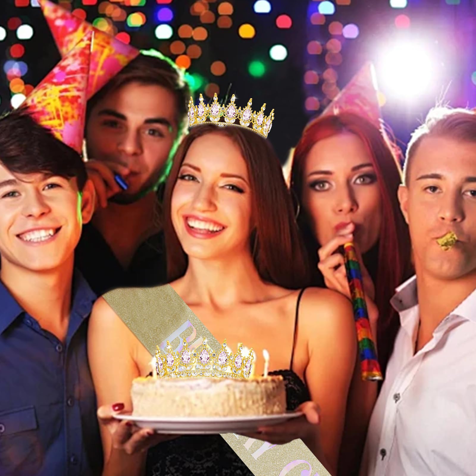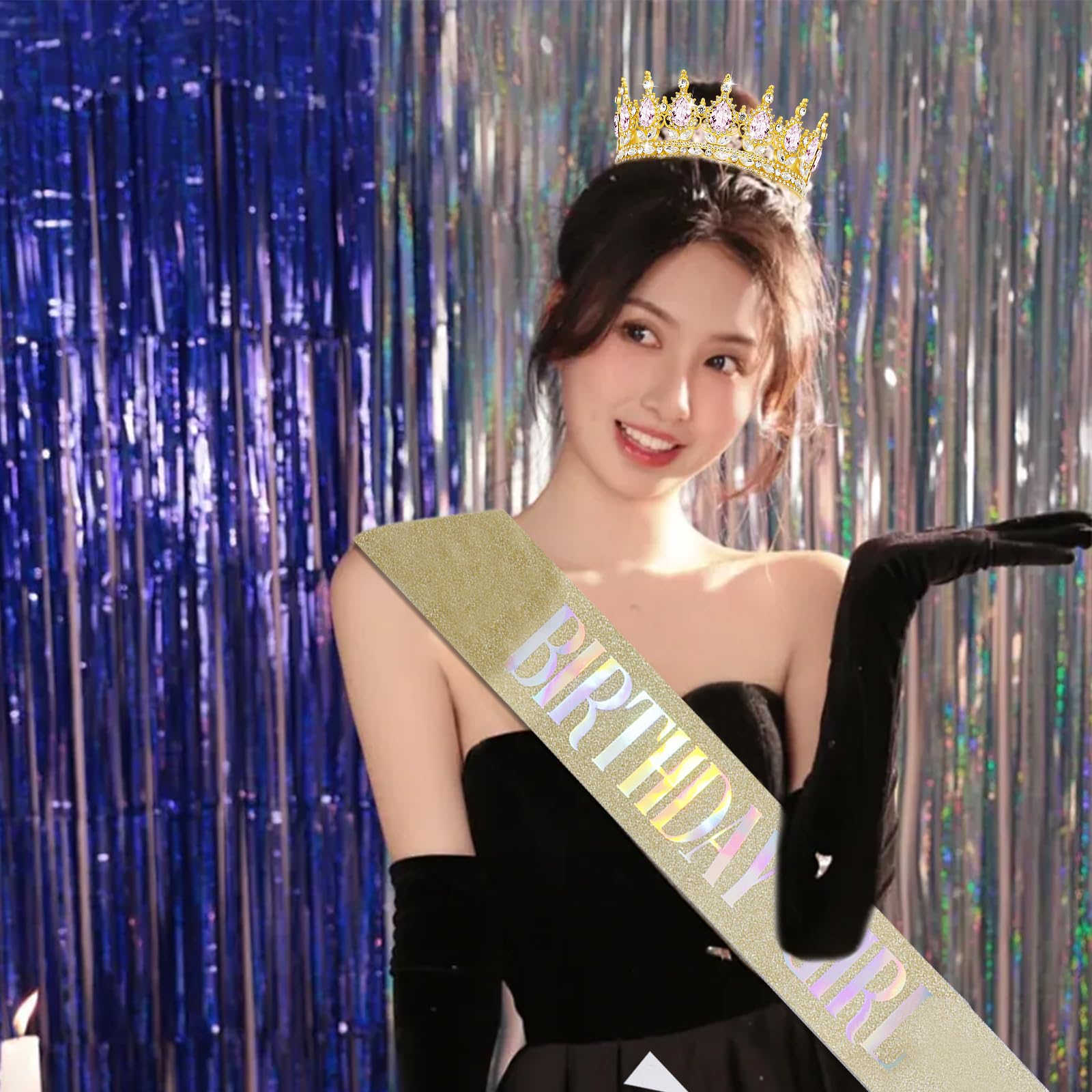 Comfortable to Wear: Our birthday crown and sash literally fits everyone! The birthday sash made from glitter fabric using hot pressed stamping foil does not tear or wrinkle easily, It looks good on any outfit and durable enough to last day into night