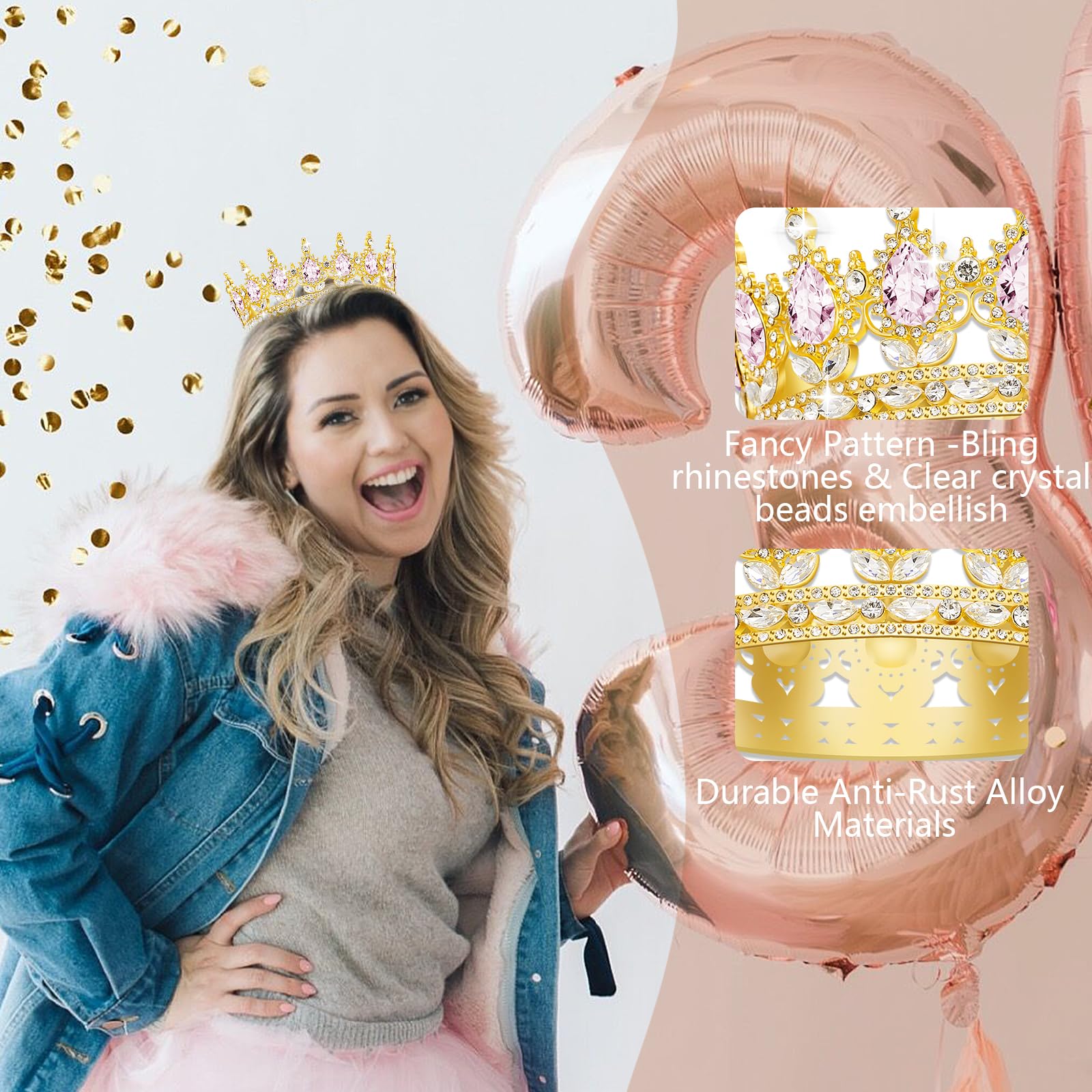 Sturdy and Comfortable Headband: The birthday tiara adopts 168 shining diamond inlaid silver plating manufacturing process, makes it shine like a real diamond. It is lightweight and adjustable in width with a rubber stopper at the end to keep you elegant and comfortable all day long