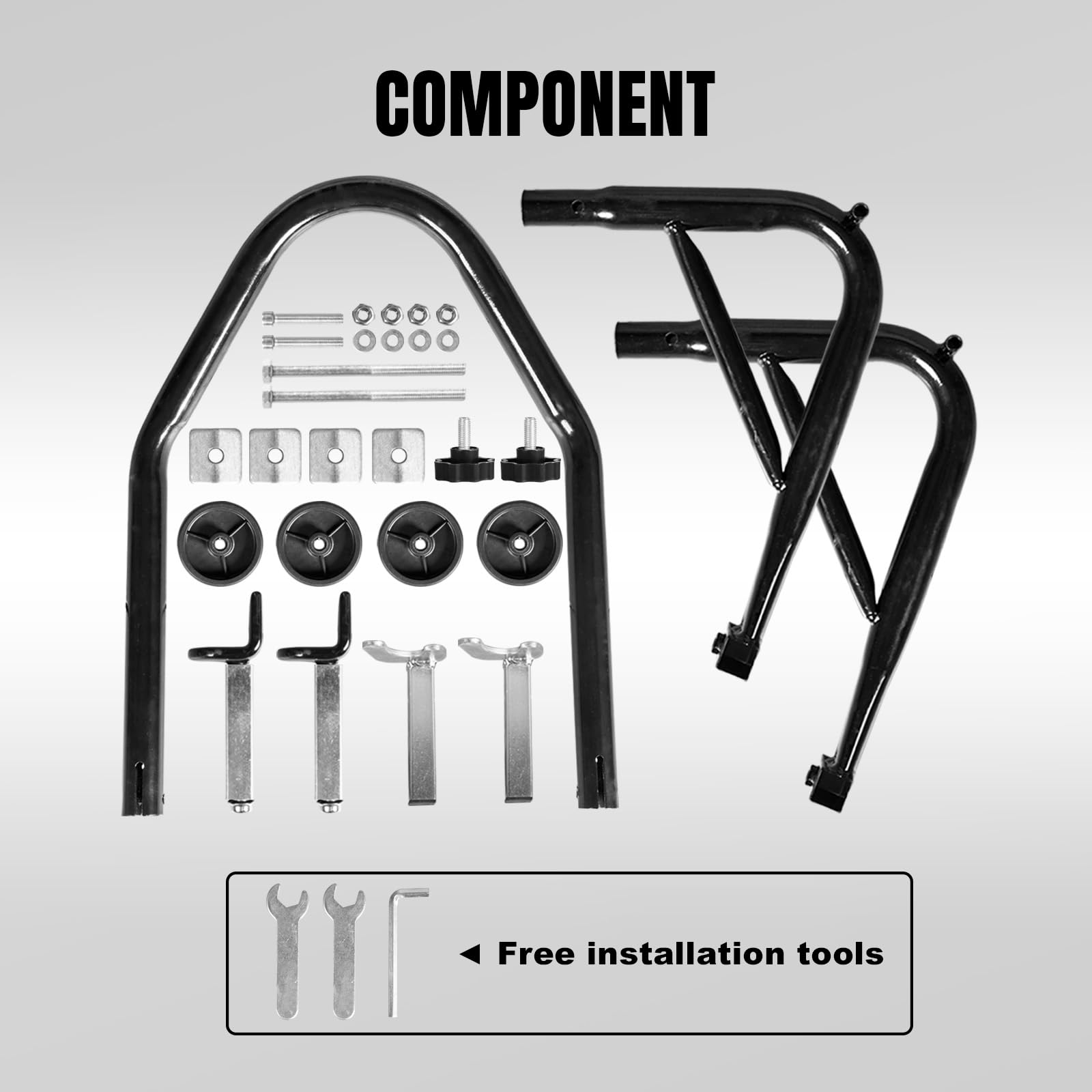 Easy to Assemble: This motorcycle Stand is easy and convenient to install. Only a few minutes to complete the installation. This combo wheel lift stand is equipped with 4 rollers to easily move your vehicle. The smooth surface is easy to clean.
