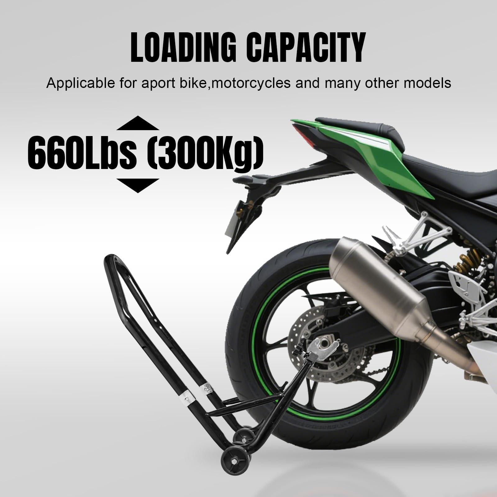 Adjustable Design: The rear combo wheel lift stand fits wheel forks 7.87" to 12.6" wide.Suitable for most bikes and motorcycles due to adjustable design,such as Yamaha,Honda,BMW,Kawasaki,Suzuki etc.
