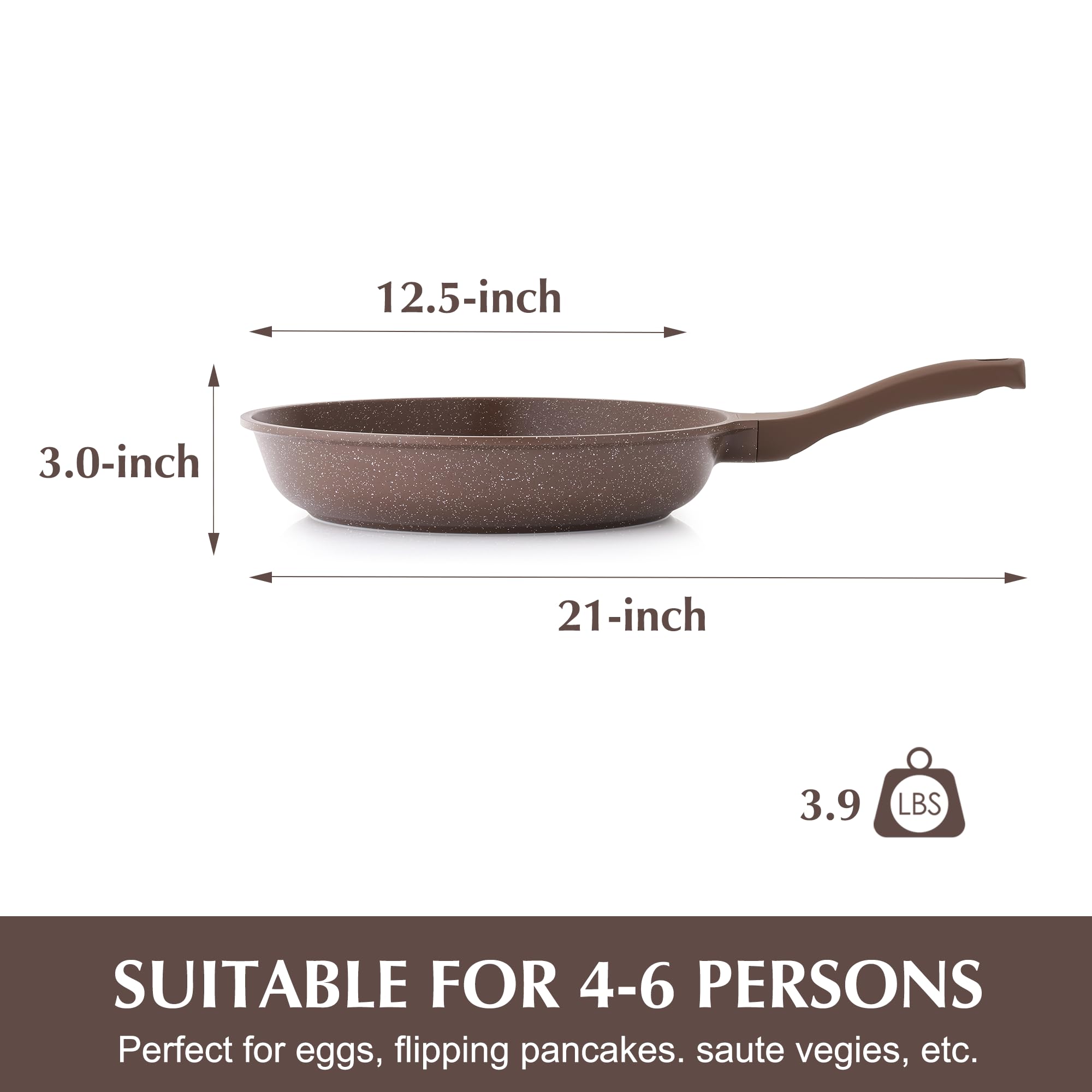 STURDY BODY - The nonstick frying pan is made of heavy-duty cast aluminum to prevent it from warping and wobbling.