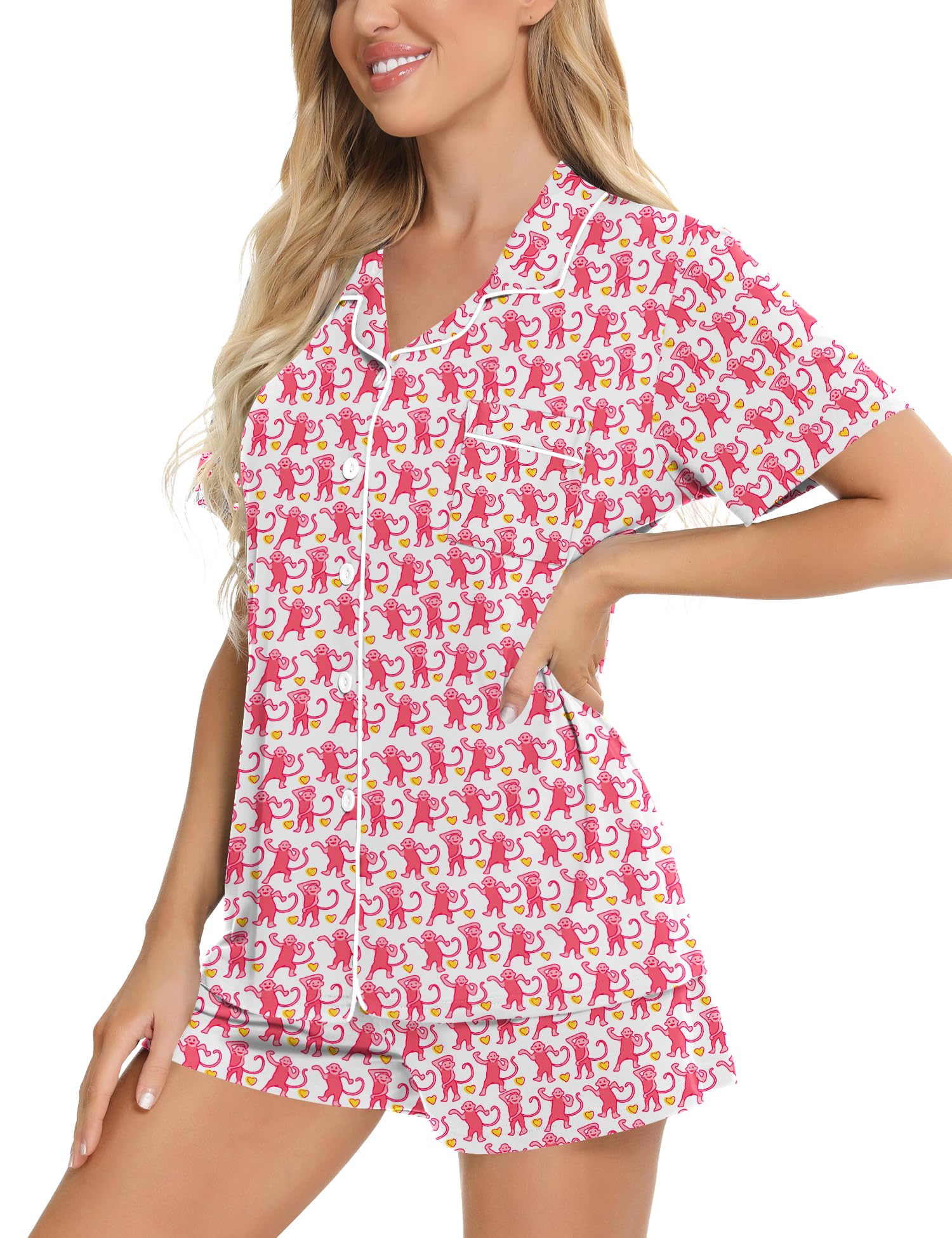 ❤【PERFECT FIT】Two-Piece Short sleeve pajama set with button front top and shorts for relaxed fit. Short sleeve pajama set features chest pocket, notch collar and contrast piping trim. It's slick and durable, bringing optimum comfort to your leisure time.