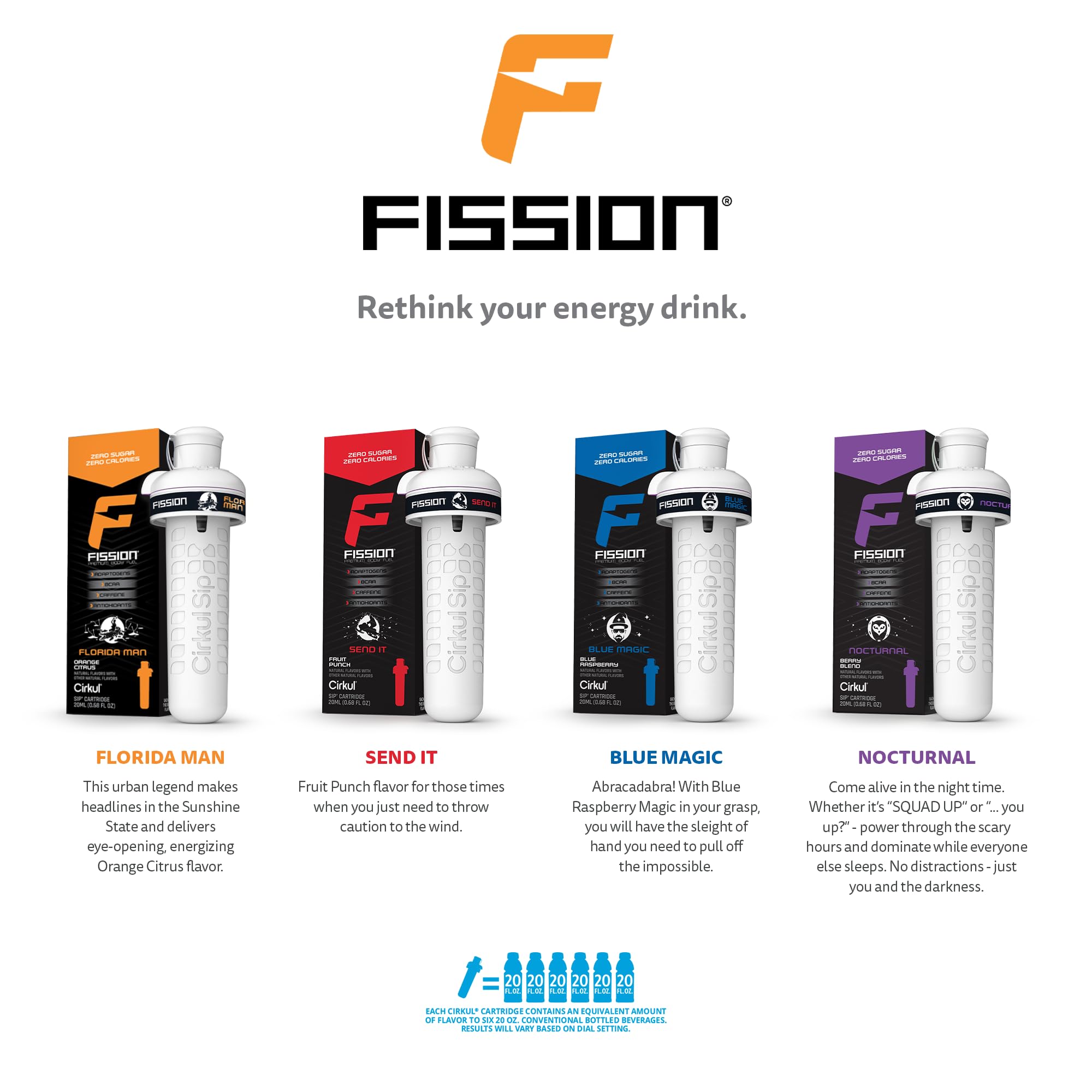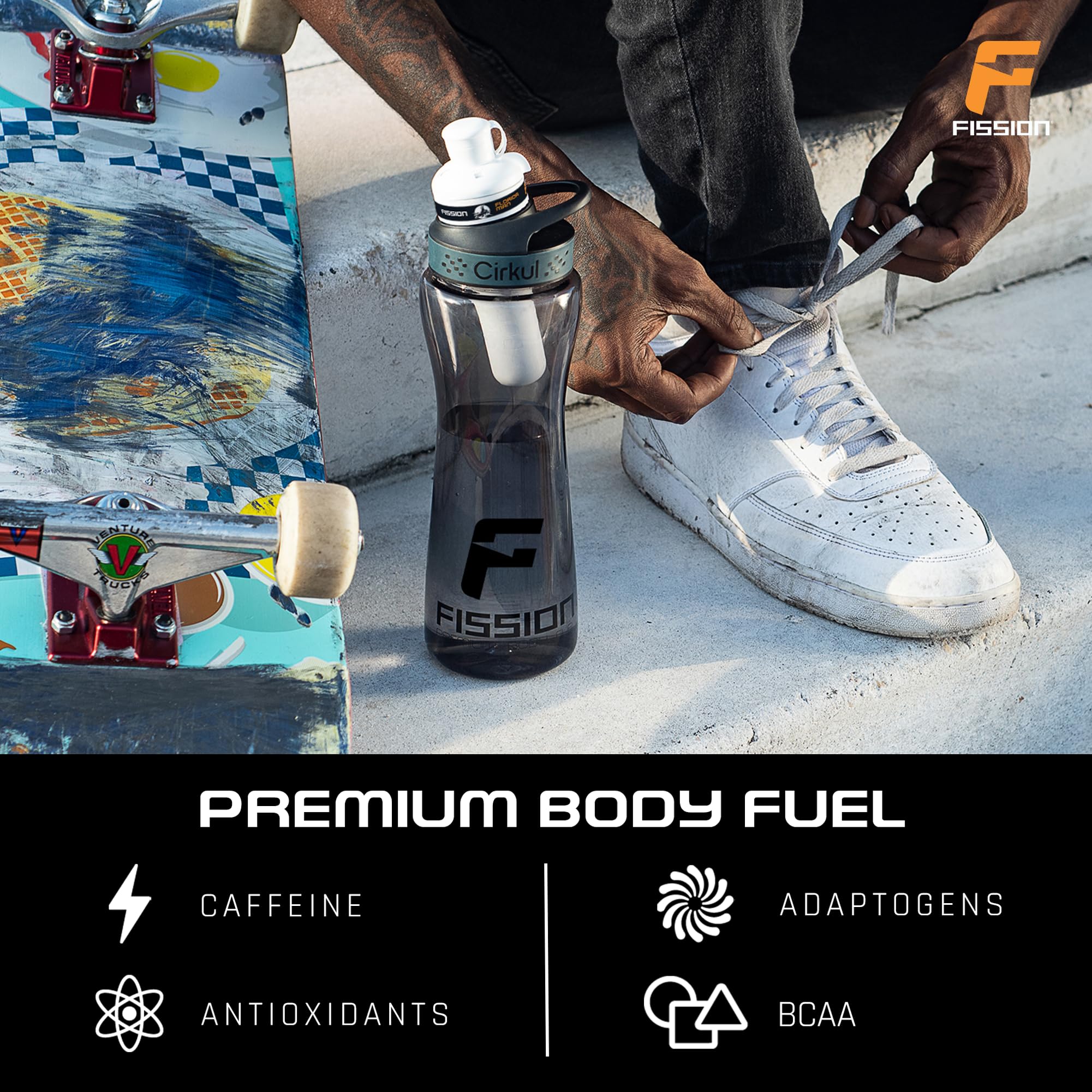 RETHINK YOUR ENERGY DRINK: Fission flavors are packed with caffeine, BCAA, adaptogens, and antioxidants.