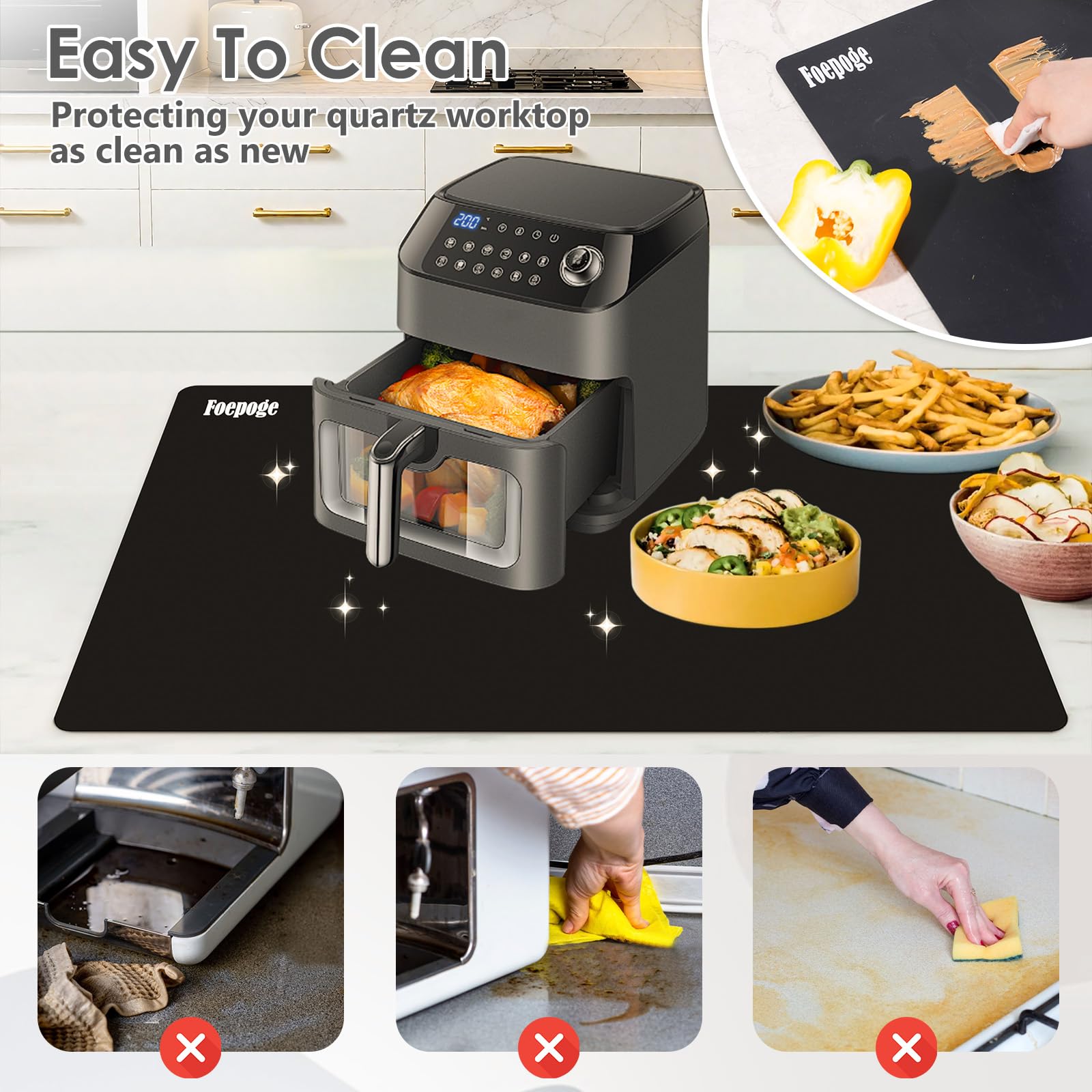 Oversize 36.2"x24": The silicone craft mat measures 36.2"x24"(92x61cm). Oversize silicone table mat is huge enough to prevent resin splatters, glue or paint stains. Keep your craft table tidy always.