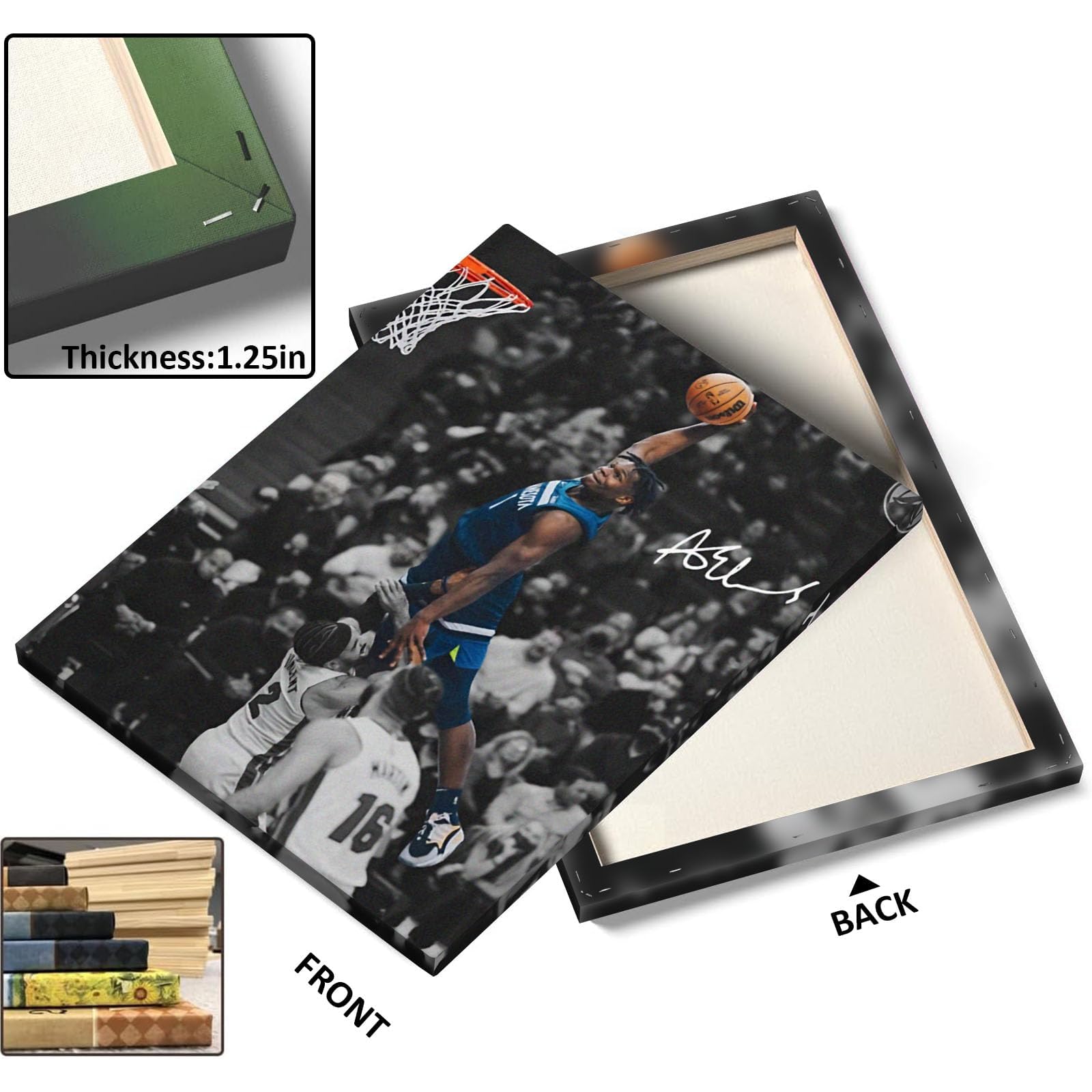 Clean Print Detail on Woven Canvas – Printed with color inks on woven canvas for crisp lines, strong contrast, and solid color areas—great for sports-themed room decor and basketball wall art displays.