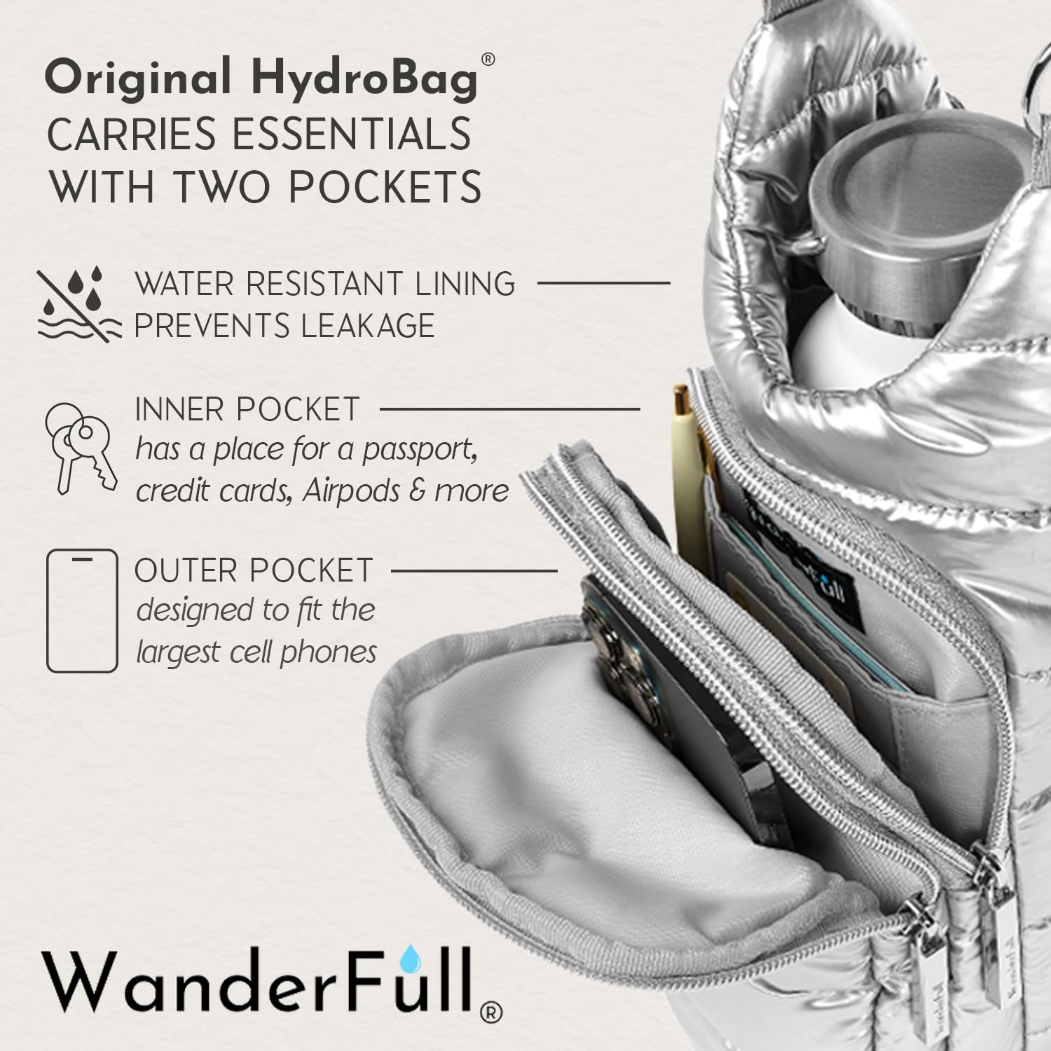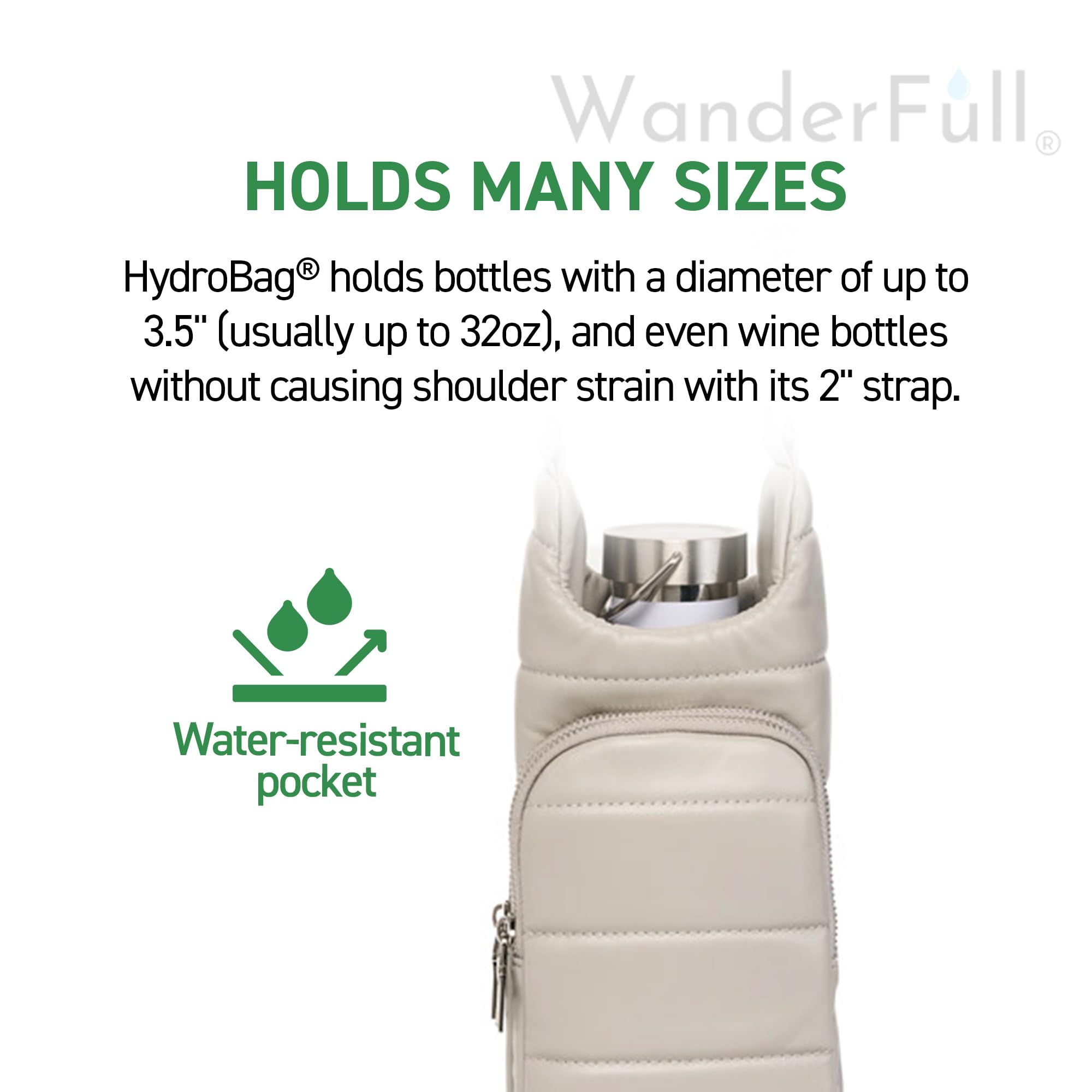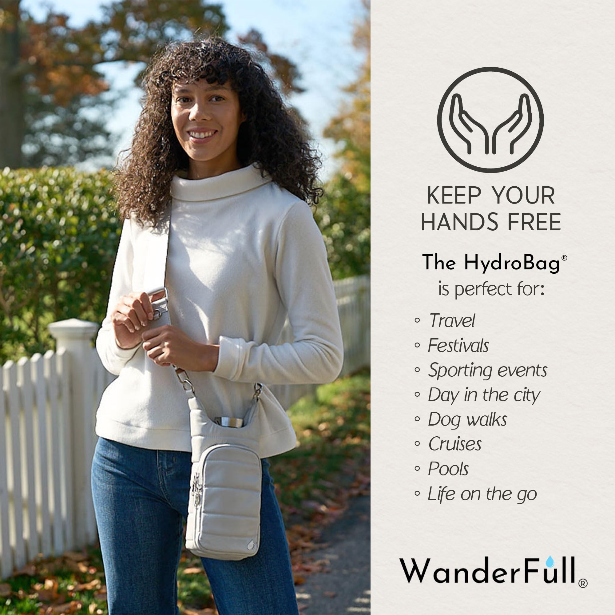 KEEP YOUR HANDS-FREE: Stay hydrated on the go with the patented WanderFull HydroBag; ideal for sightseeing, festivals, sports events, travel, or dog walks. Enjoy convenience, without compromising on style. Water bottle not included.