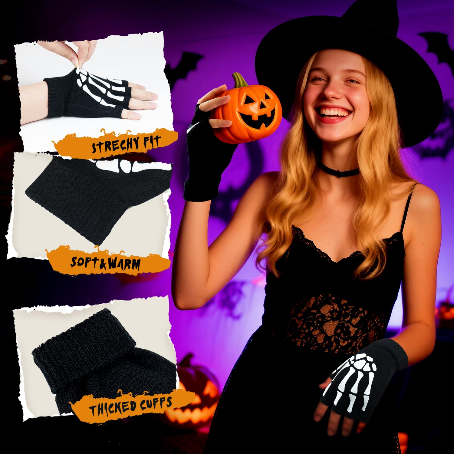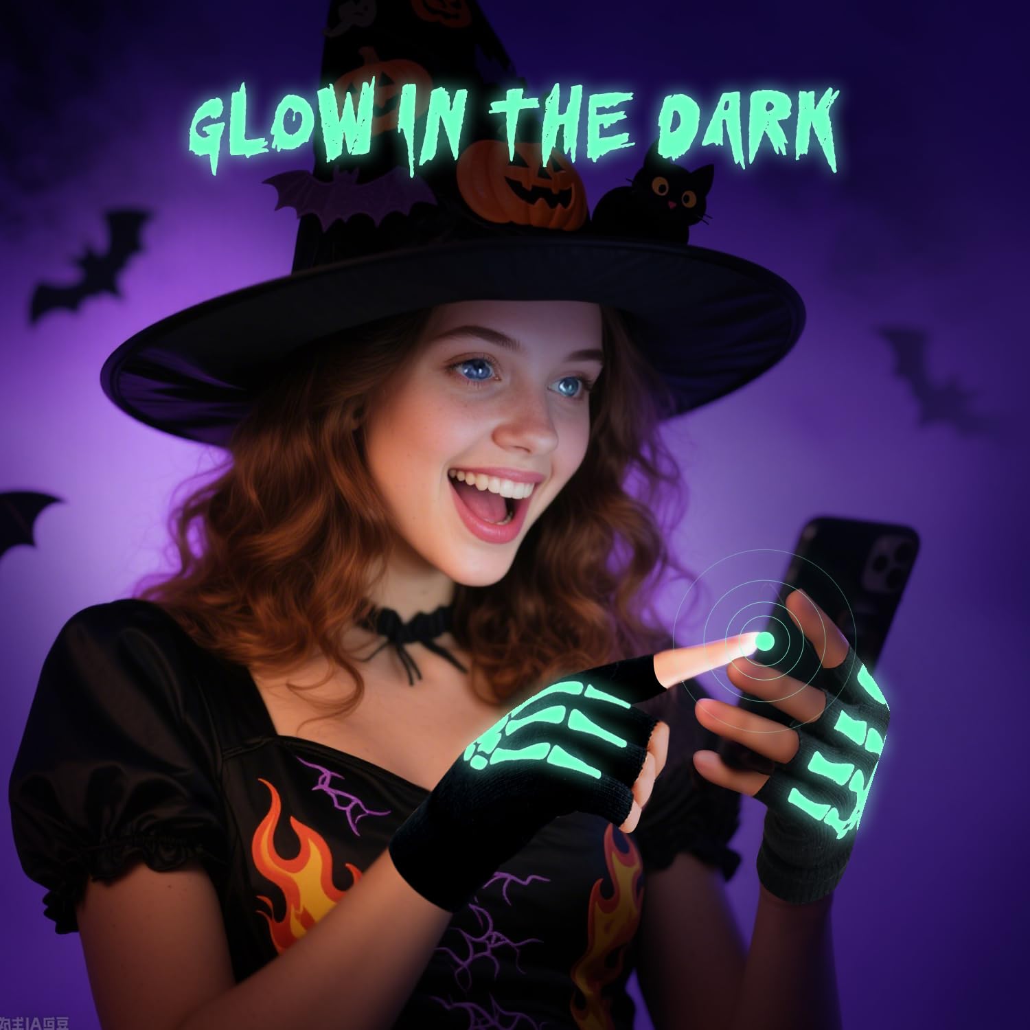 GLOW IN THE DARK & TOUCHSCREEN & WARM - Made with special print that GLOW in the DARK, also with 3 touch screen finger, The skeleton gloves will provide your hands soft and warm protection while texting/typing/writing in cold winter. You can also wear them for outdoor activities. This skeleton gloves have good air permeability and bear a slight collision
