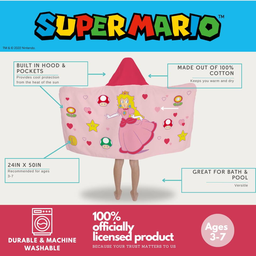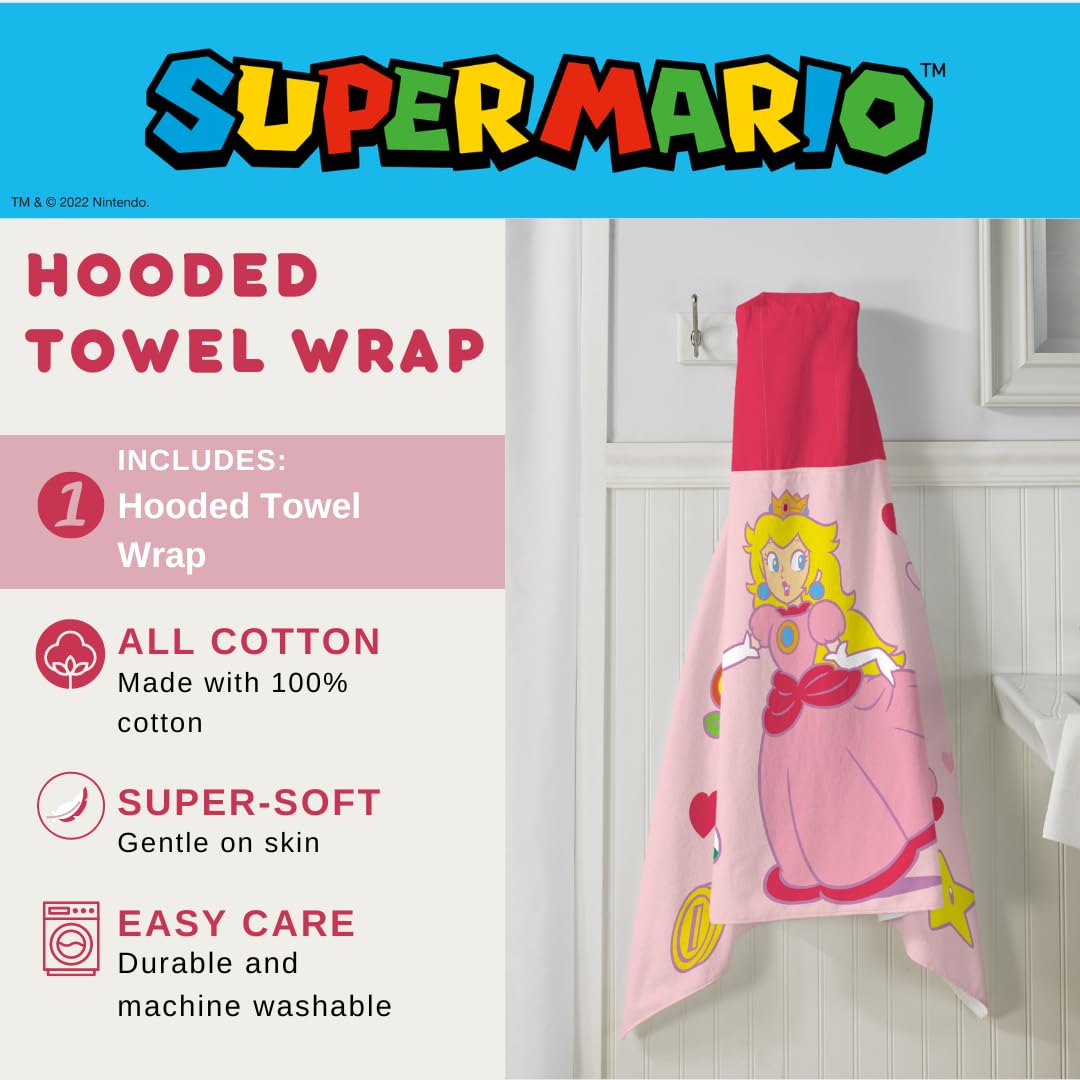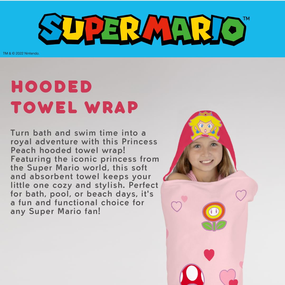 PRINCESS PEACH DESIGN: Make bath time a royal adventure with this Princess Peach Hooded Towel Wrap! Your child will love being wrapped in cozy comfort while their favorite princess from the Super Mario world adds smiles and fun. Perfect for bath time, pool days, or beach outings, this towel brings playful charm to every moment!