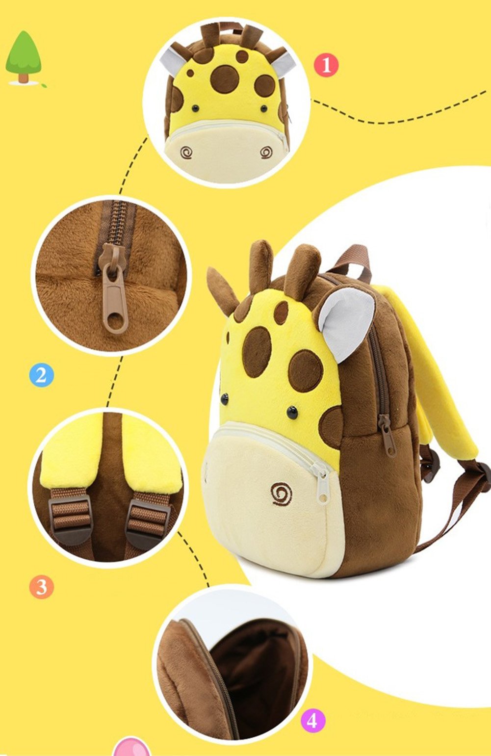 Unique Design: Toddler backpack with friendly animal face pattern design; very cute and funny