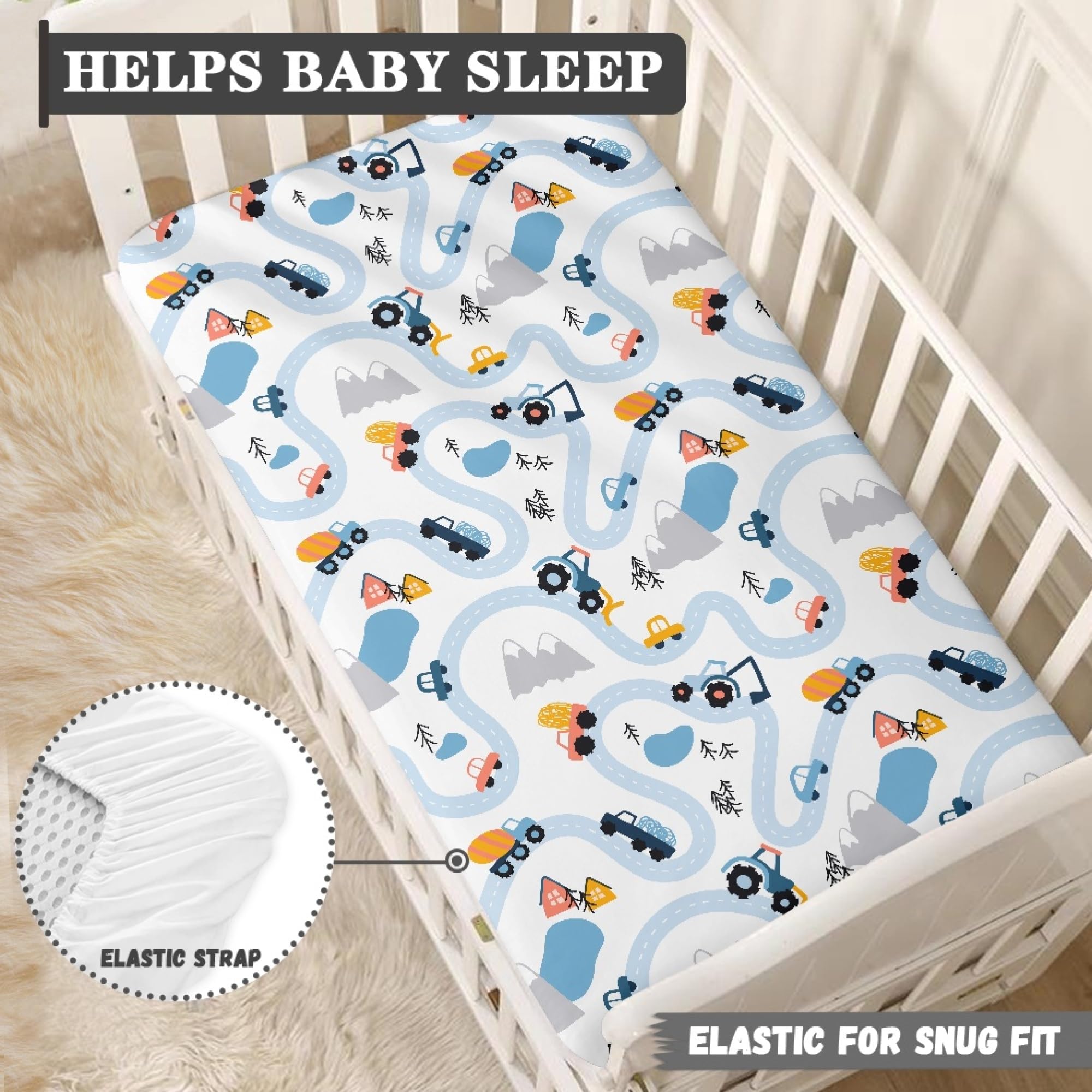 Universal Application: These transport vehicle fitted baby crib sheets fit a standard size 28" x 52" x 8" crib mattress. Each sheet has elastic on all four sides