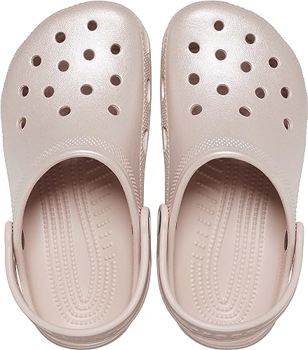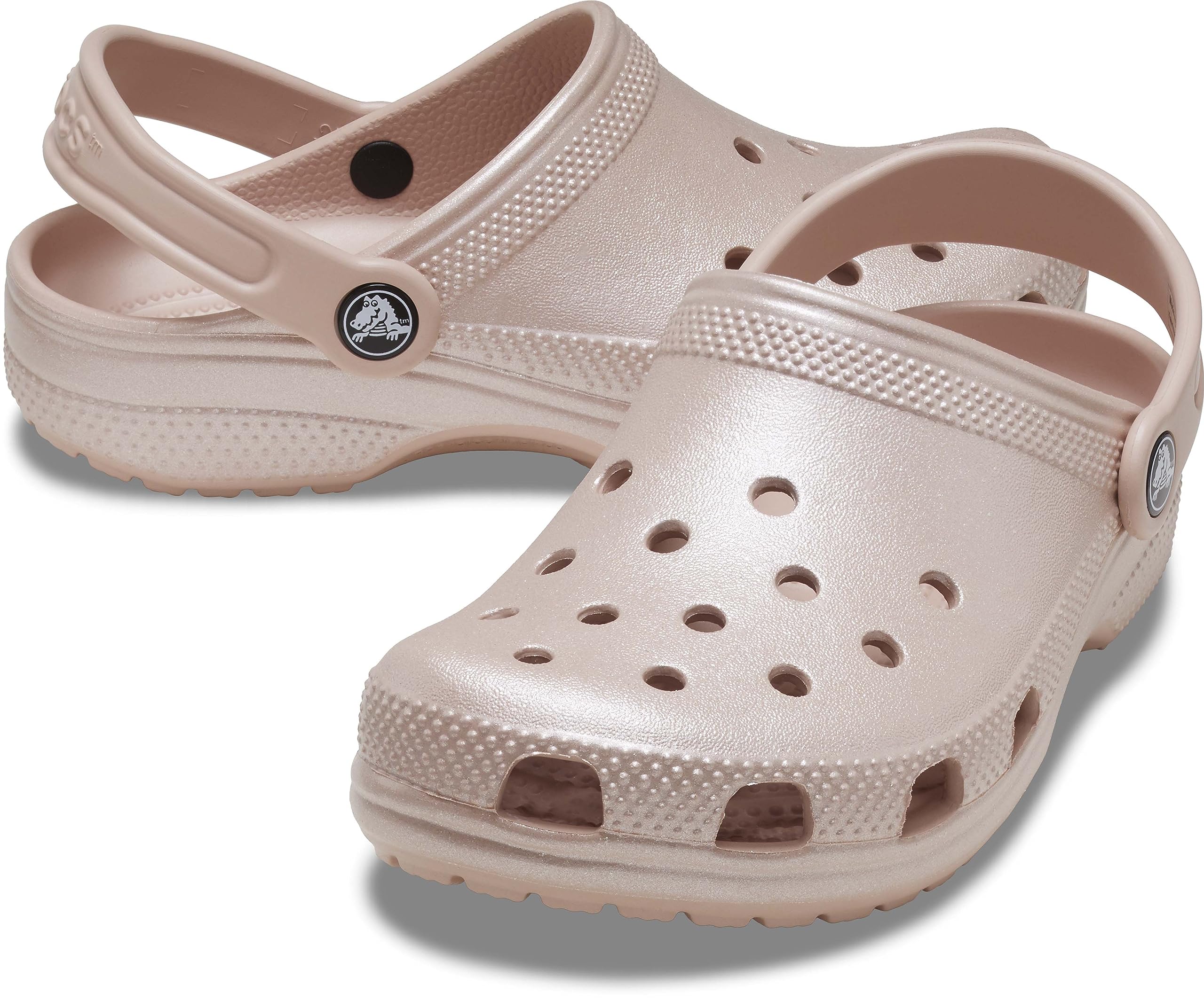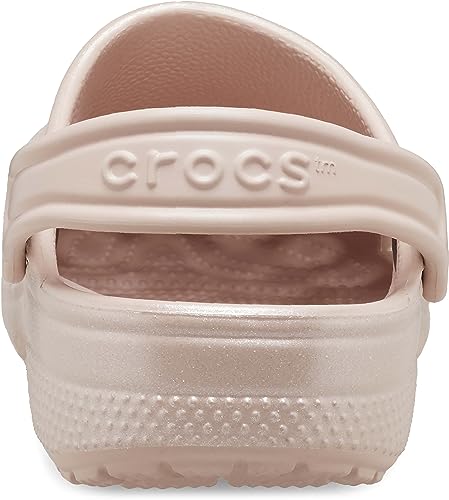 SPARKLING STYLE: The Croc Kids Classic glitter clog is a fashionable choice for your little one, featuring an allover glitter detail that adds a touch of sparkle to their outfit. The glitter design not only looks chic but also adds a playful and eye-catching element to their look. Whether they're attending parties, family gatherings, or simply enjoying everyday adventures, these clogs ensure they stand out in style.