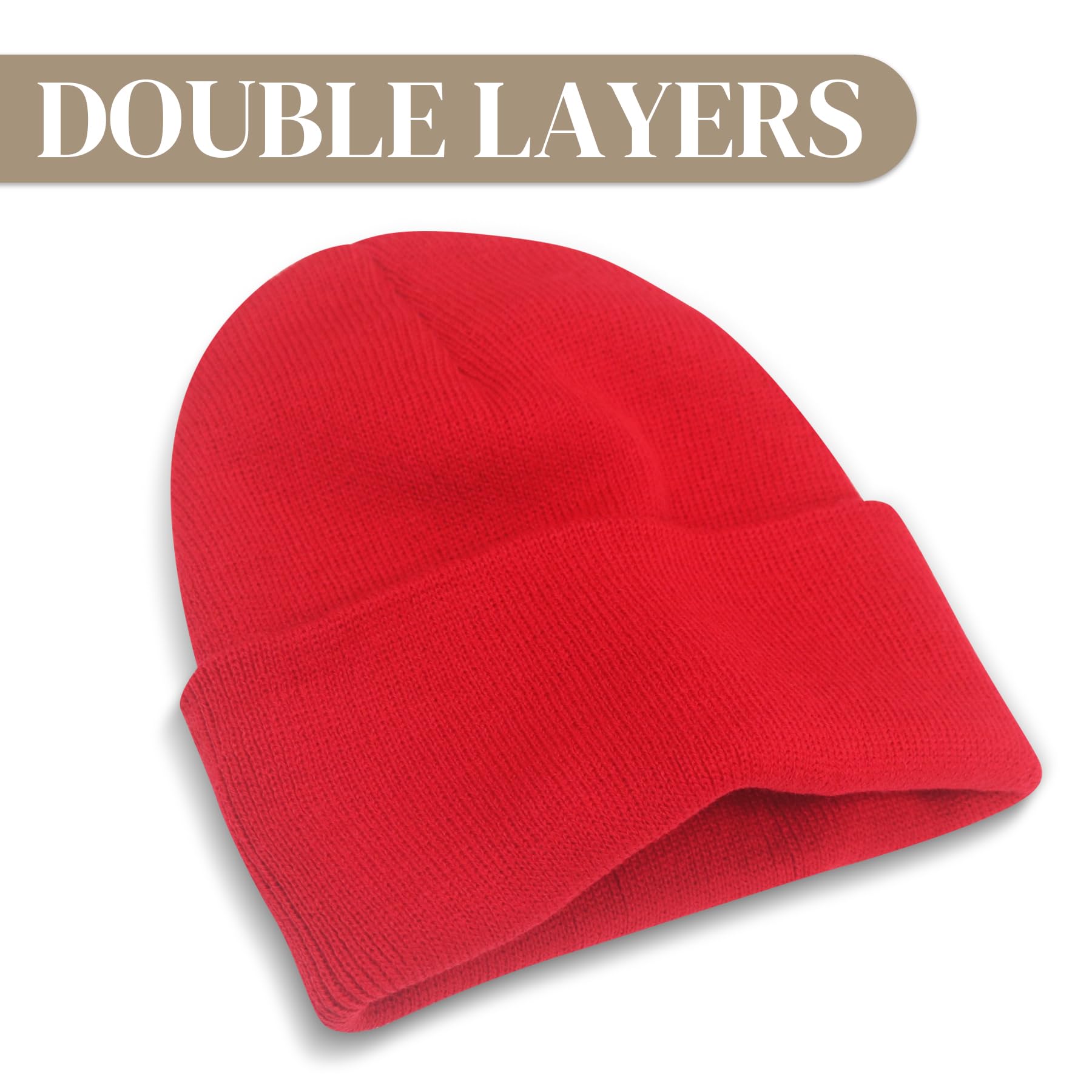 KEEP WARM: Double layers knitted beanie will keep your head warm all winter long. You can pull the cuff of this beanies hat down to cover your ears for added warmth