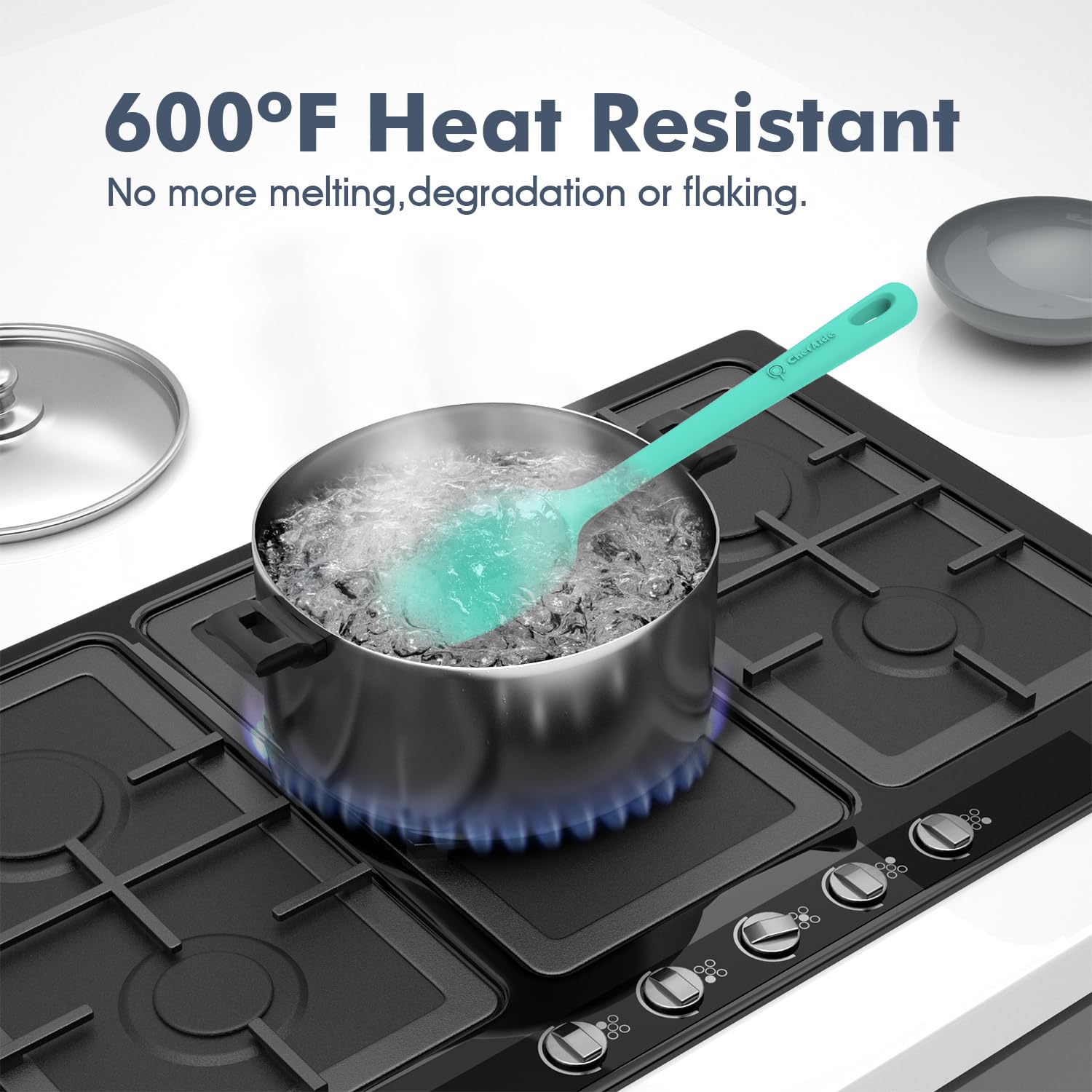 Premium 100% Food Grade Silicone: The silicone spatula set is made of healthy and friendly material, resistant to high temperatures up to 600 °F. No more melting, cracking and worrying