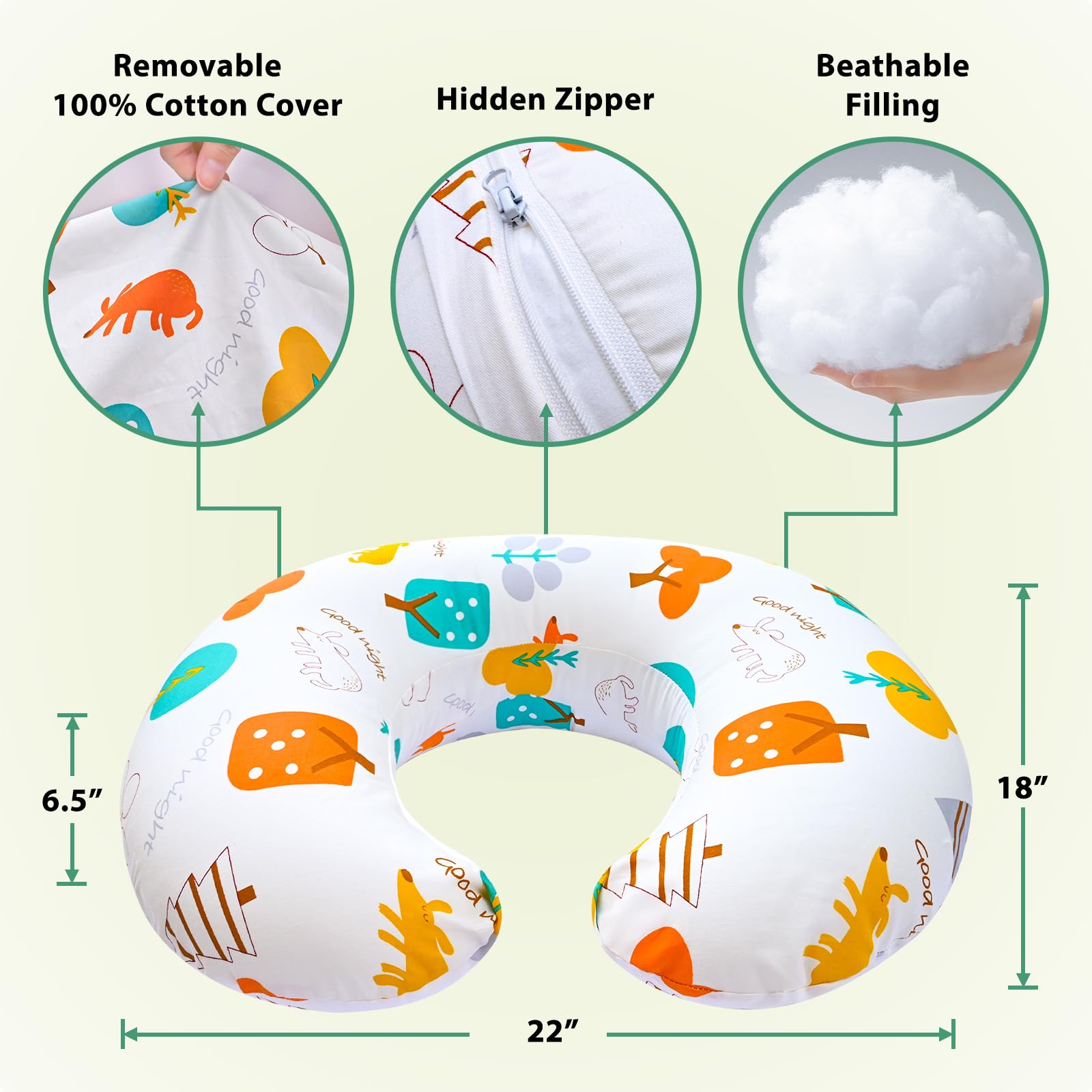 100% Cotton Cover-Our pillow for babies is maed of 100% pure cotton meterial that feels soft and breathable. Breast feeding pillows for babies are friendly to sensitive skin. Hidden zipper prevents you and your baby from being scratched