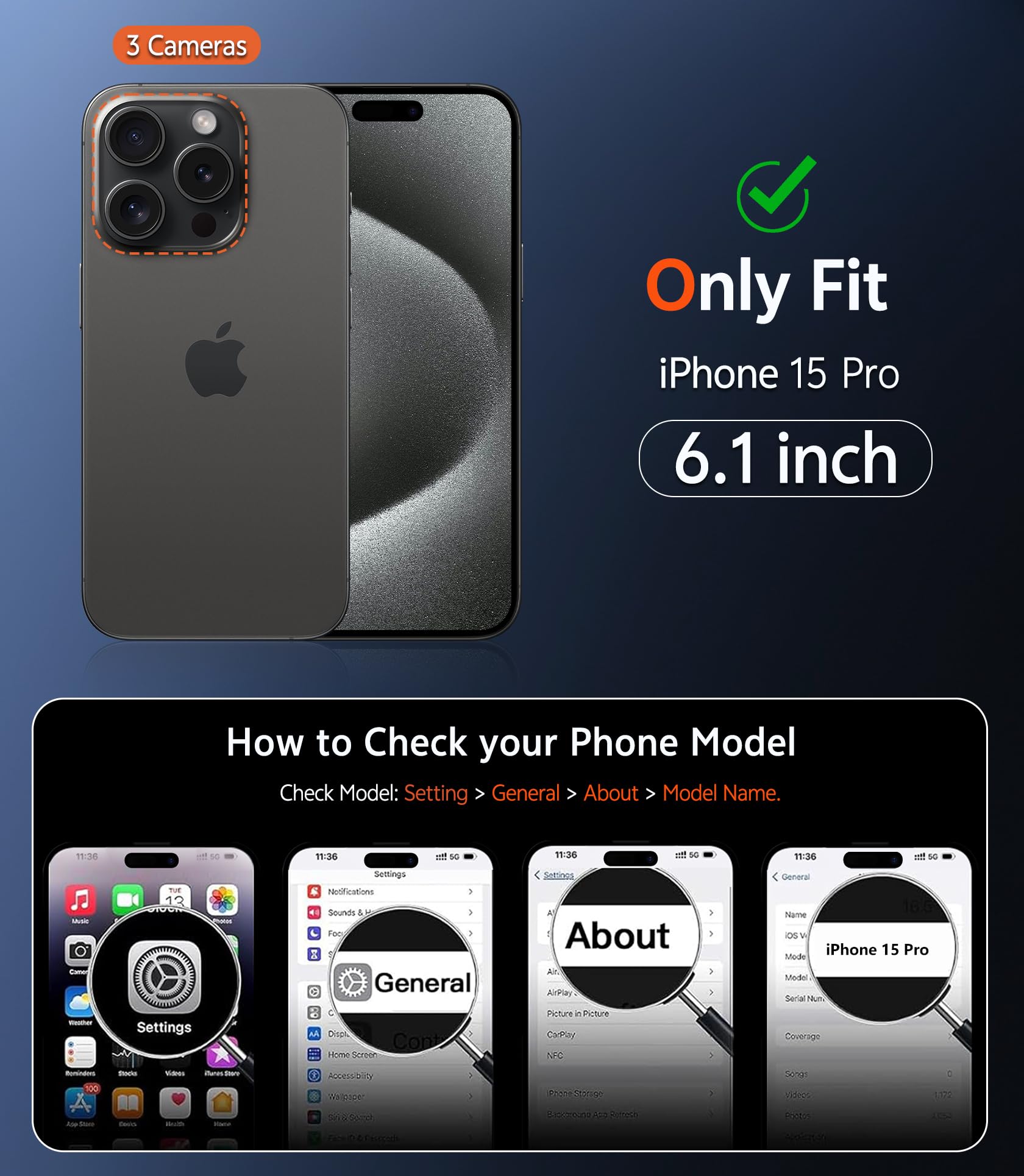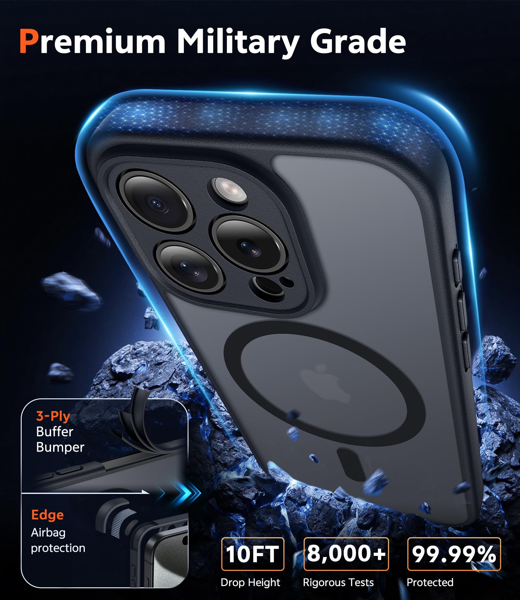 14FT Military Grade Drop Protection: Our case for iPhone 15 Pro backplane is made with rigid polycarbonate and flexible shockproof TPU bumpers around the edge and features 4 built-in corner Airbags to absorb impact, which can prevent your Phone from accidental drops, bumps, and scratches