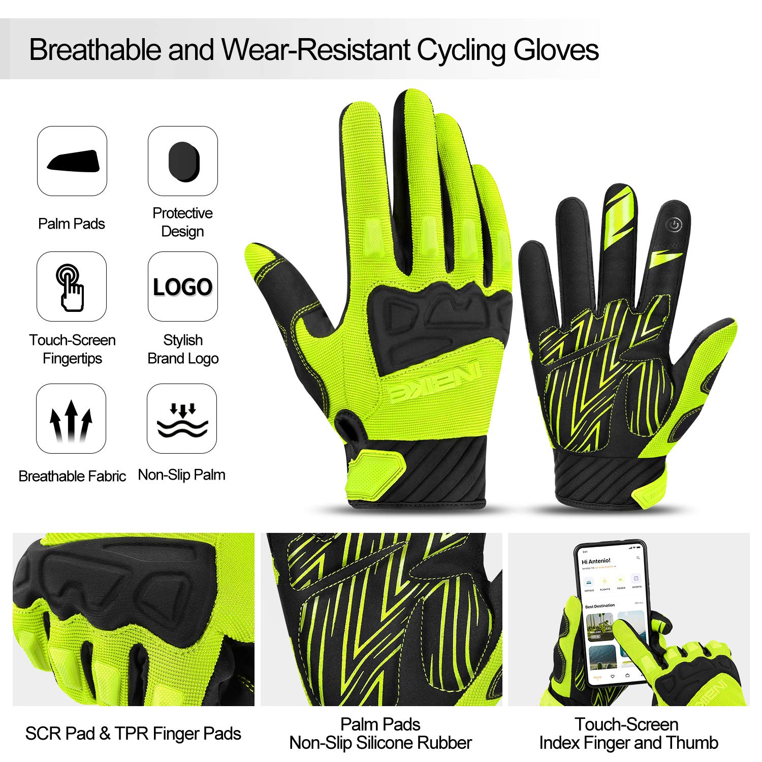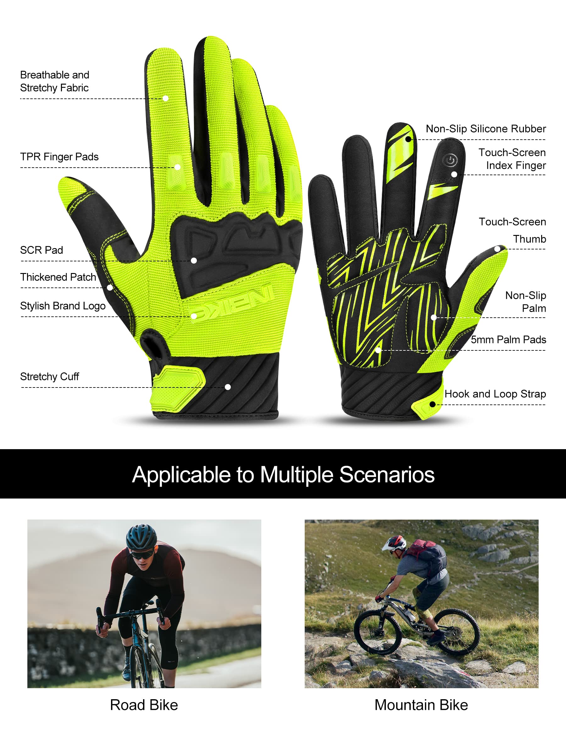 [Knuckles Protection]: The environmentally friendly SCR and TPR rubber on the back of bicycle gloves, will protect knuckles from injury when encounter friction or collision. Covering rubber only in critical areas makes the gloves more breathable.