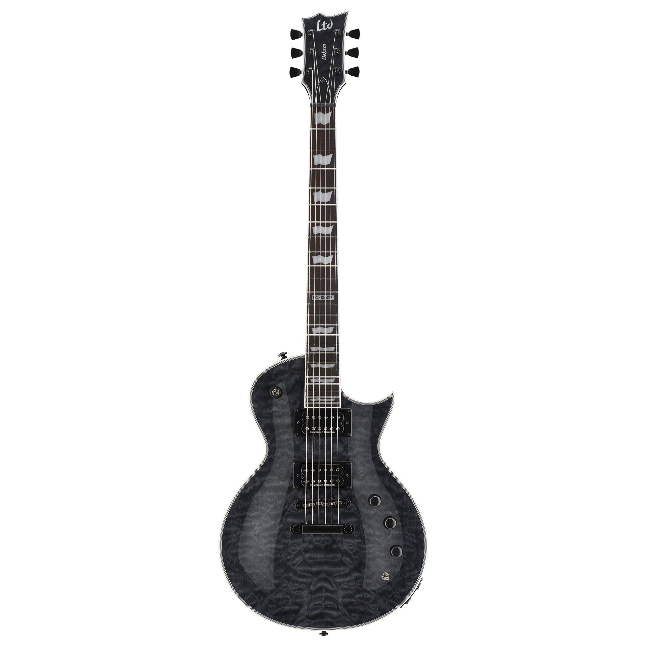 As one of the most innovative and versatile guitars in the LTD Deluxe Series, the EC-1000 PIEZO is our first model to include both standard magnetic pickups as well as a completely separate piezo pickup system. Piezo pickups create a very different sound from typical magnetic pickups, offering excellent articulate, acoustic-like tones. With the EC-1000 PIEZO, you can use the mini toggle switch to select between the standard pickup set -- the excellent Seymour Duncan ’59 and JB -- and a Fishman Powerbridge and Tailpiece, or even combine them both. This level of sonic flexibility continues to the guitar's dual output jacks, allowing you to route the pickups to different combinations of amplifiers or interfaces onstage for live performances or in the studio for recording sessions. The EC-1000 PIEZO offers a great-looking quilted maple top on its mahogany body, and is available in See Thru Blue and See Thru Black finishes.