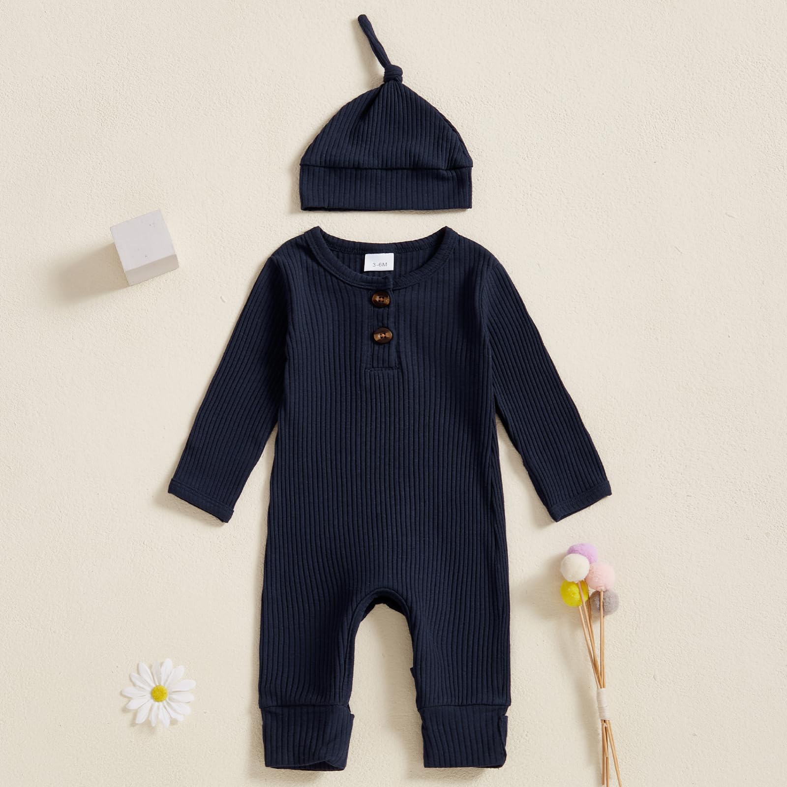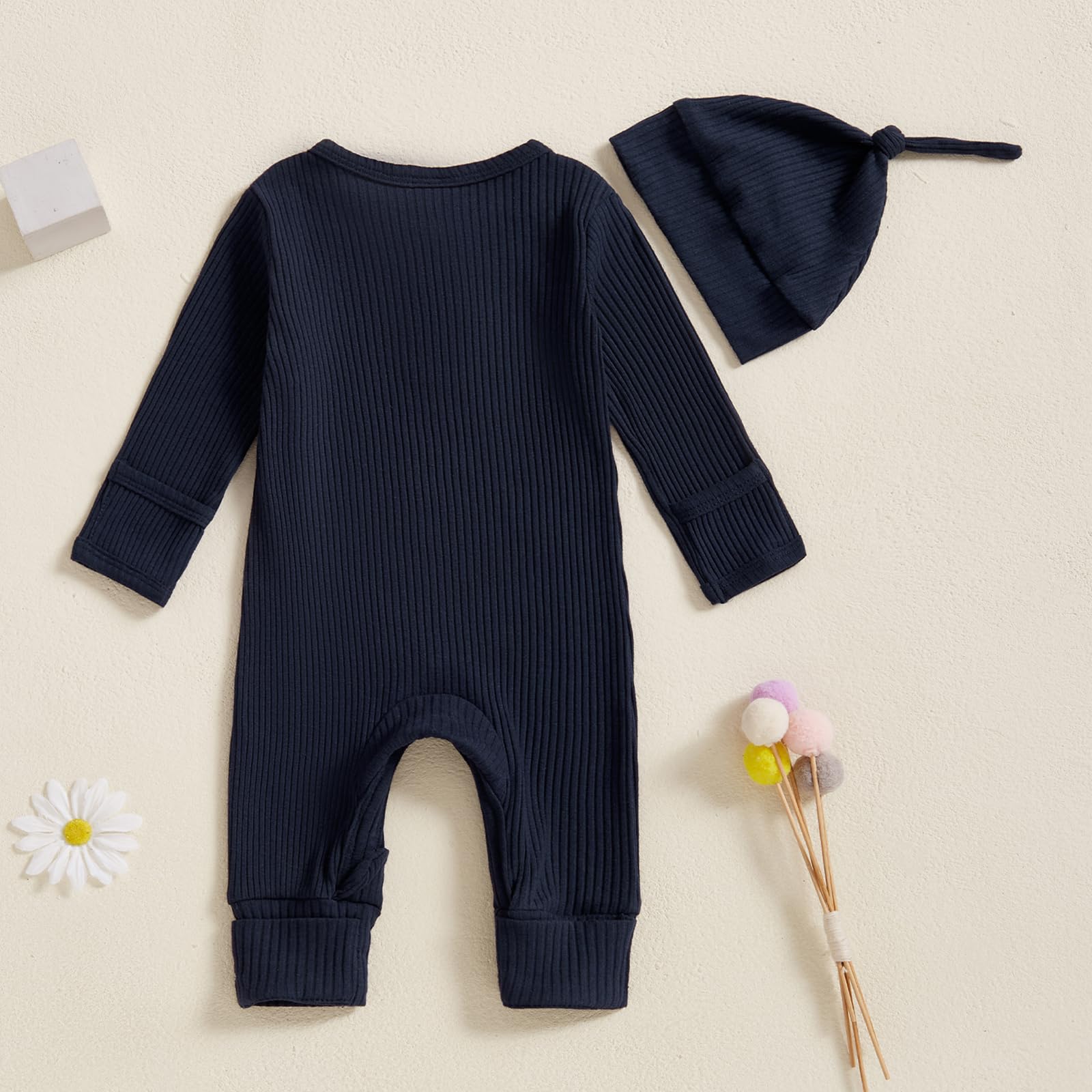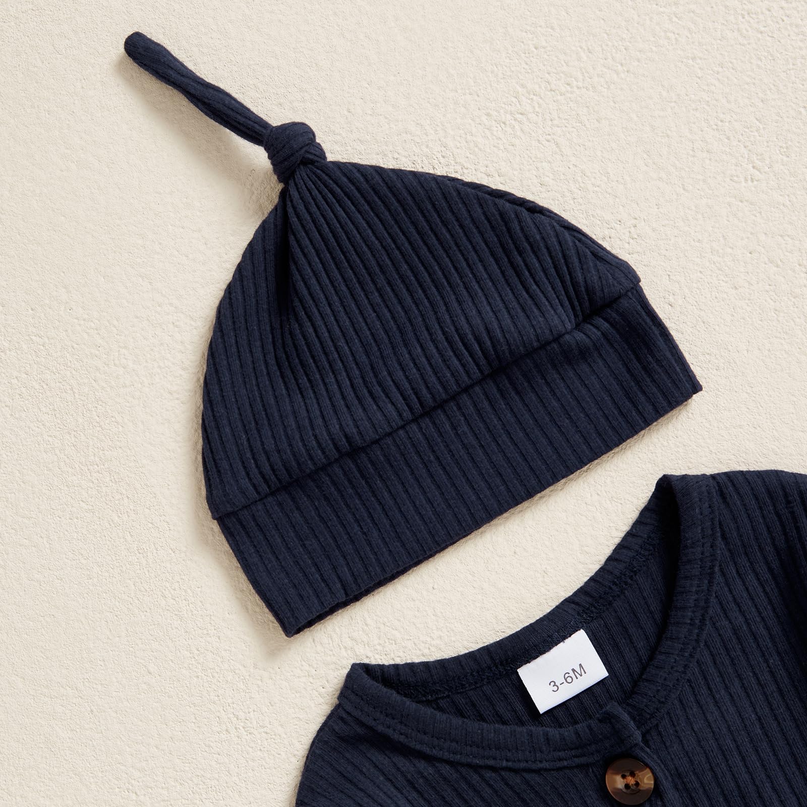 FEATURE: 2Pcs clothes set, a hat, long sleeve, zipper, buttons, ribbed knit, solid color, round neck, fall and spring outfits.