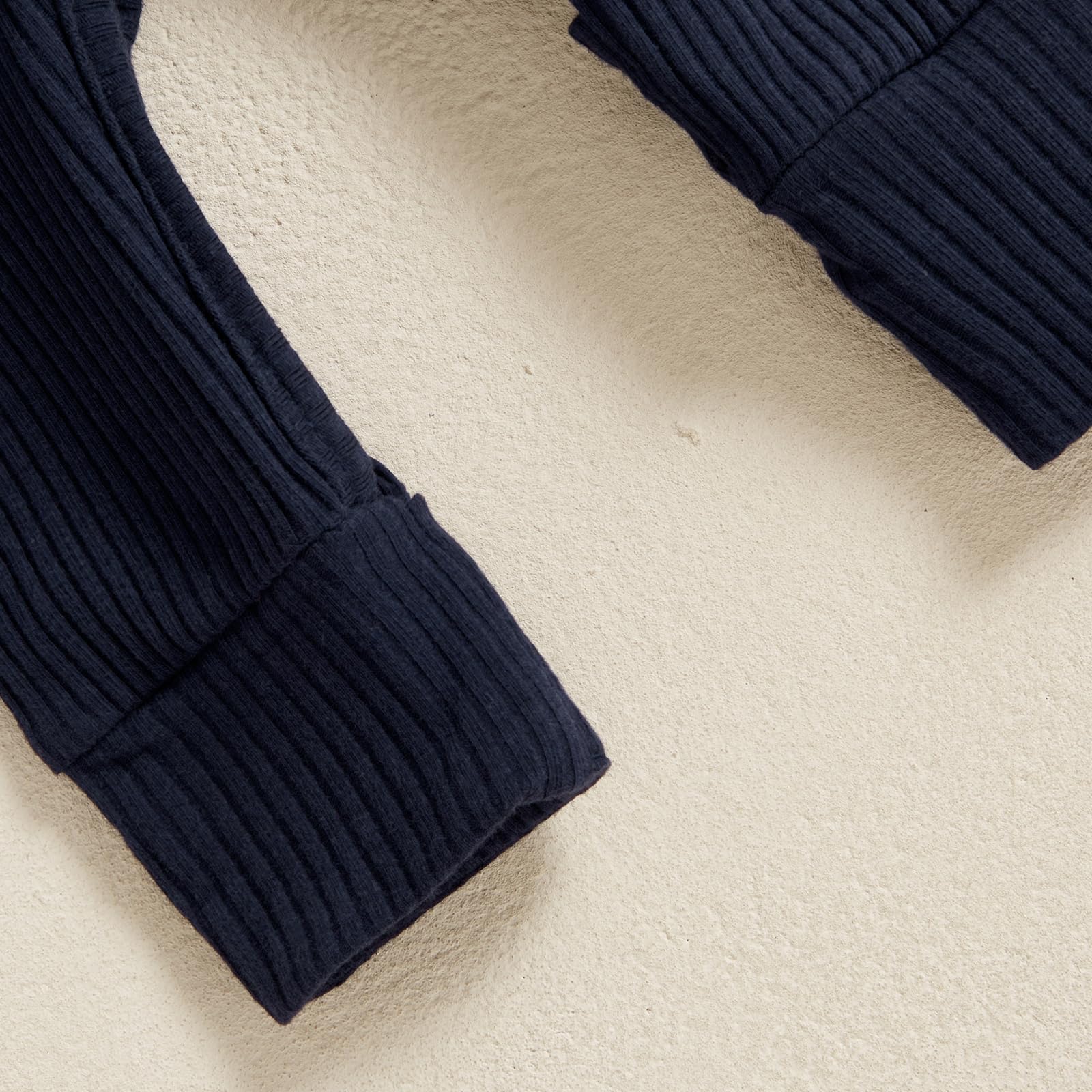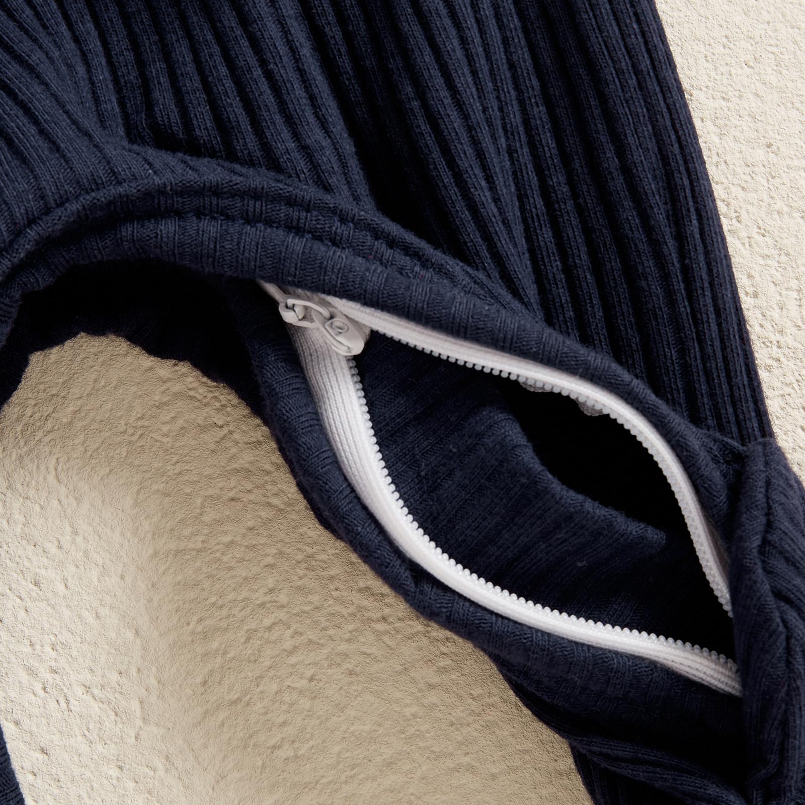 DESIGN POINT 1: The open-crotch is zipper not snap, it will be more convenient. DESIGN POINT 2: Built-in Mittens, reversible mitten hand covers to prevent baby from scratching themselves.