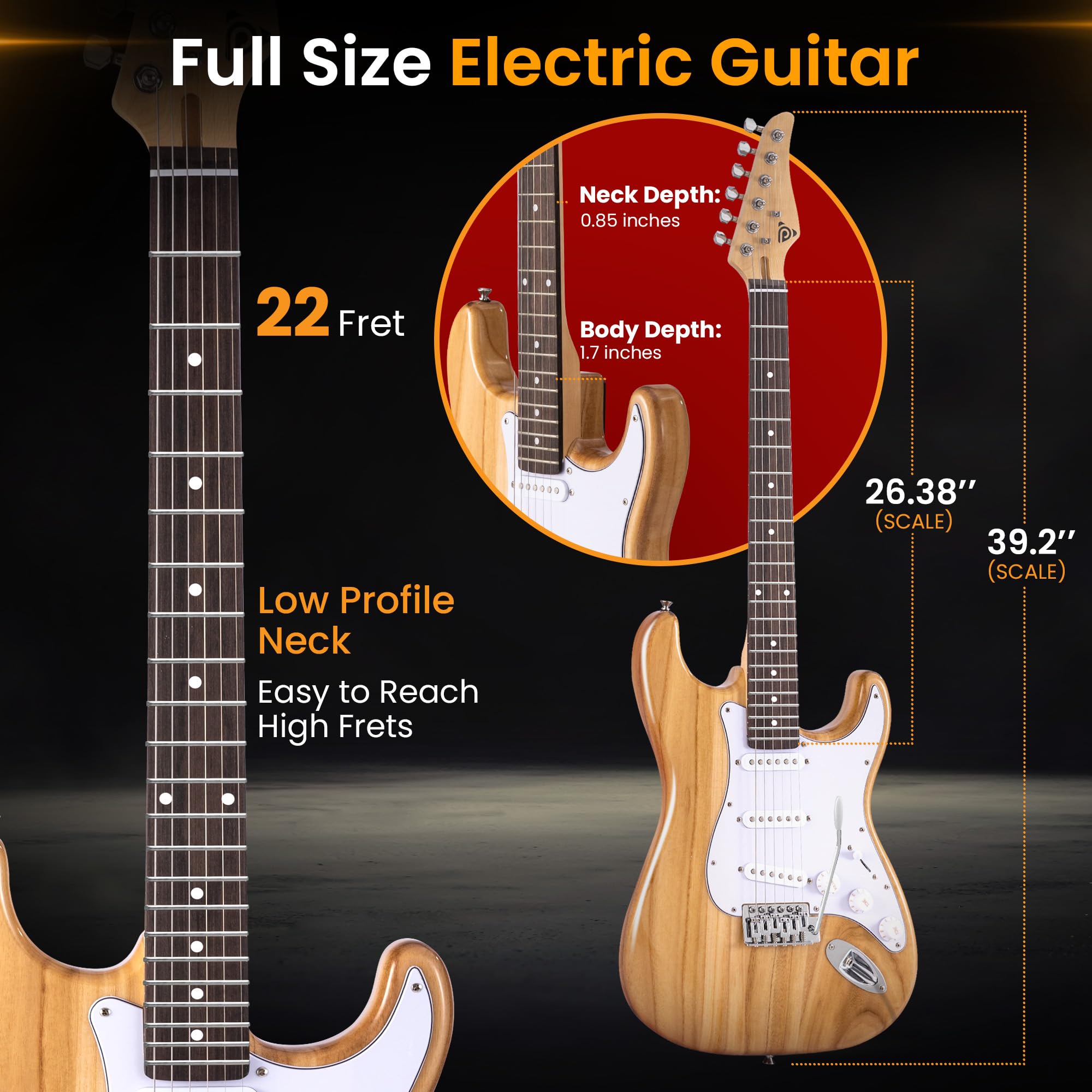 EASY TO TUNE AND ADJUST - The 22-fret guitar includes die-cast chrome machine heads for smooth, precise tuning. Rotary volume and tone controls allow easy customization, letting you find your perfect sound with ease.