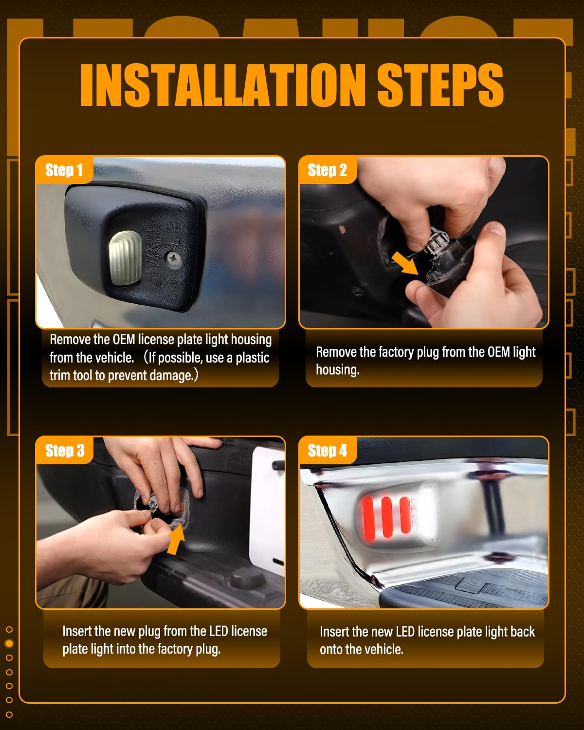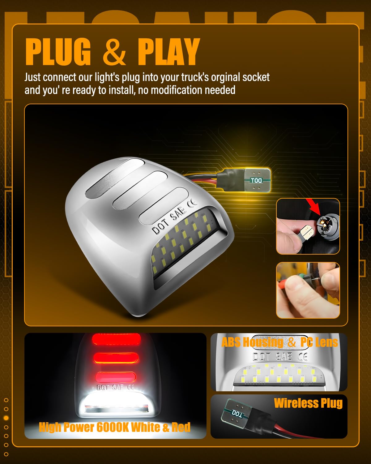 10 Min Installation-LESAUCE red LED tag light for Sierra are 1:1 the same size as OEM tag lights. Simply remove original 194 halogen bulbs and connect the plug. Only take 10 min to upgrade your halogen to LED w/o any modification