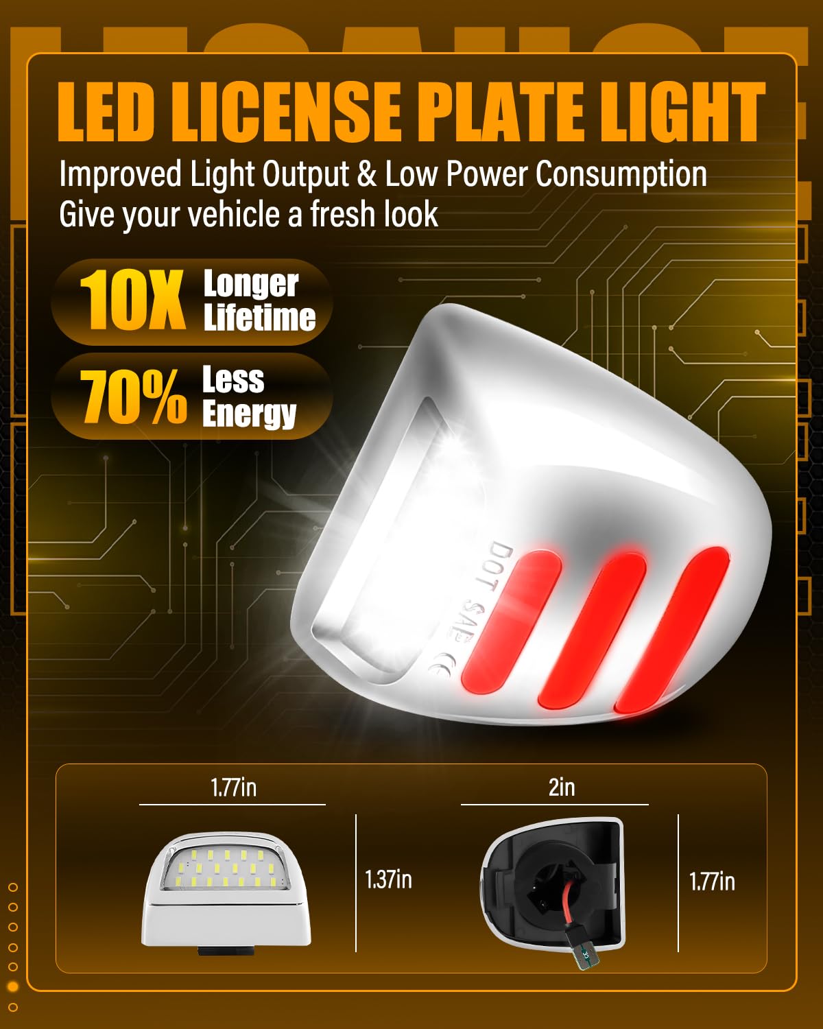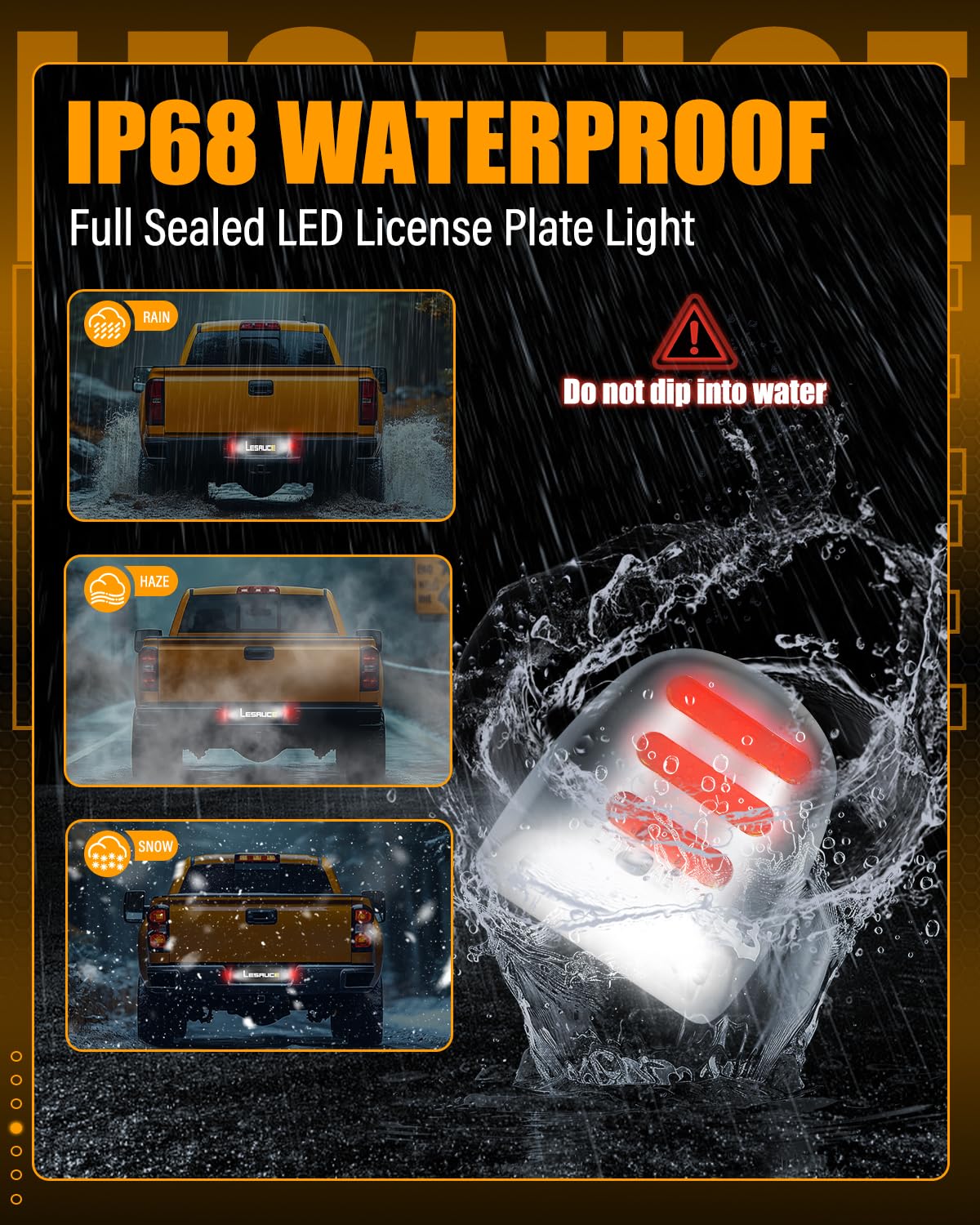 High Quality-Different from poor quality plastic and black housing, LESAUCE upgraded to chrome housing. IP68 waterproof can be applied to foggy, rainy, snowy, dusty all weather conditions, reducing the LED license plate lights replacement