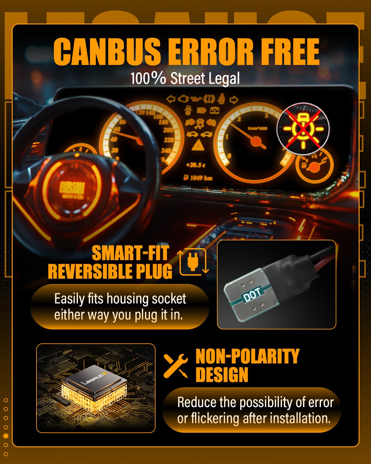 Canbus Ready-Upgraded IC driver can bring no canbus error. LESAUCE LED license plate light can fit for super duty without OBC error warnings, no interference with FM radio, reducing the possibility of pulled over for flashing lights