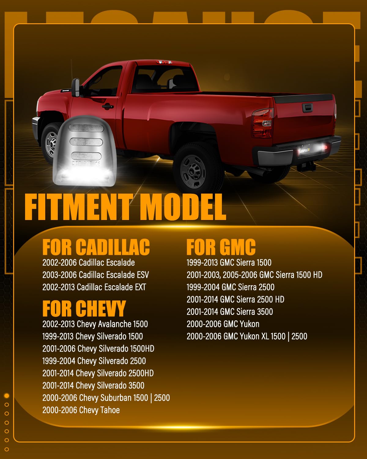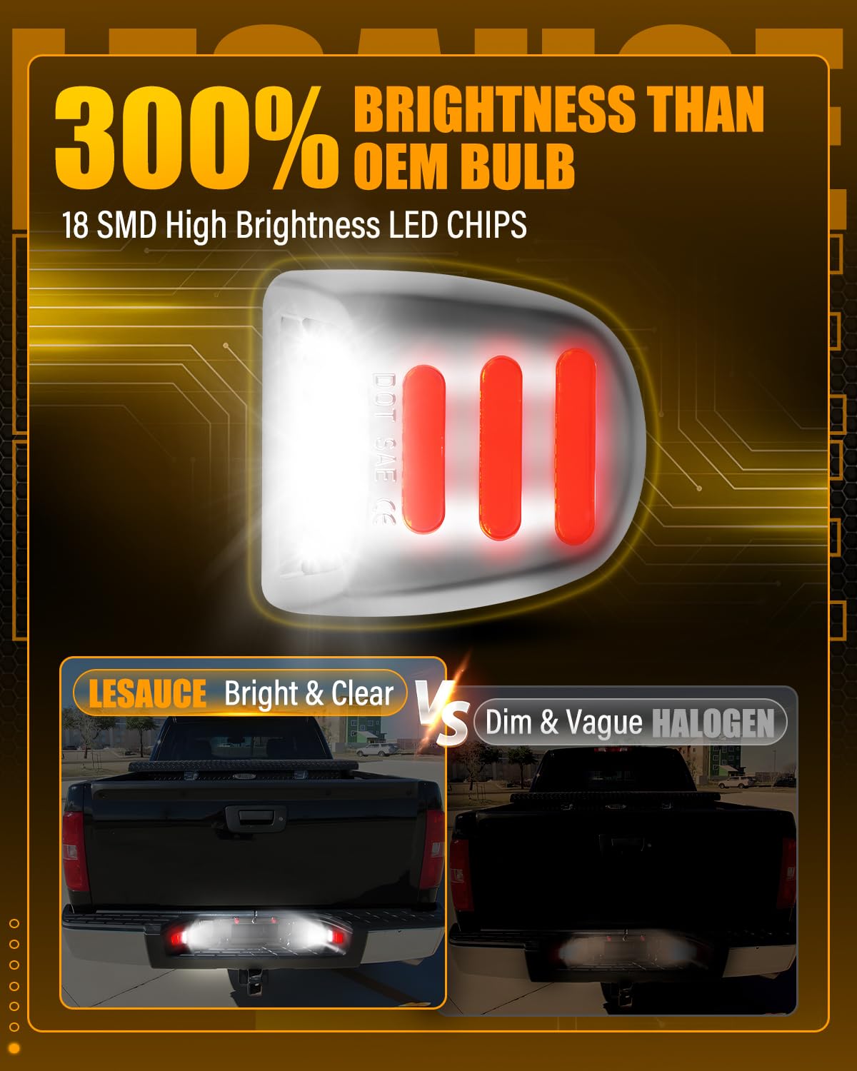 300% Ultra Brightness-Built in full high power SMD LED chips, LESAUCE LED license plate lights for Silverado are 300% brighter than OEM tag lights, improving the visibility on rear license plate light especially driving at night