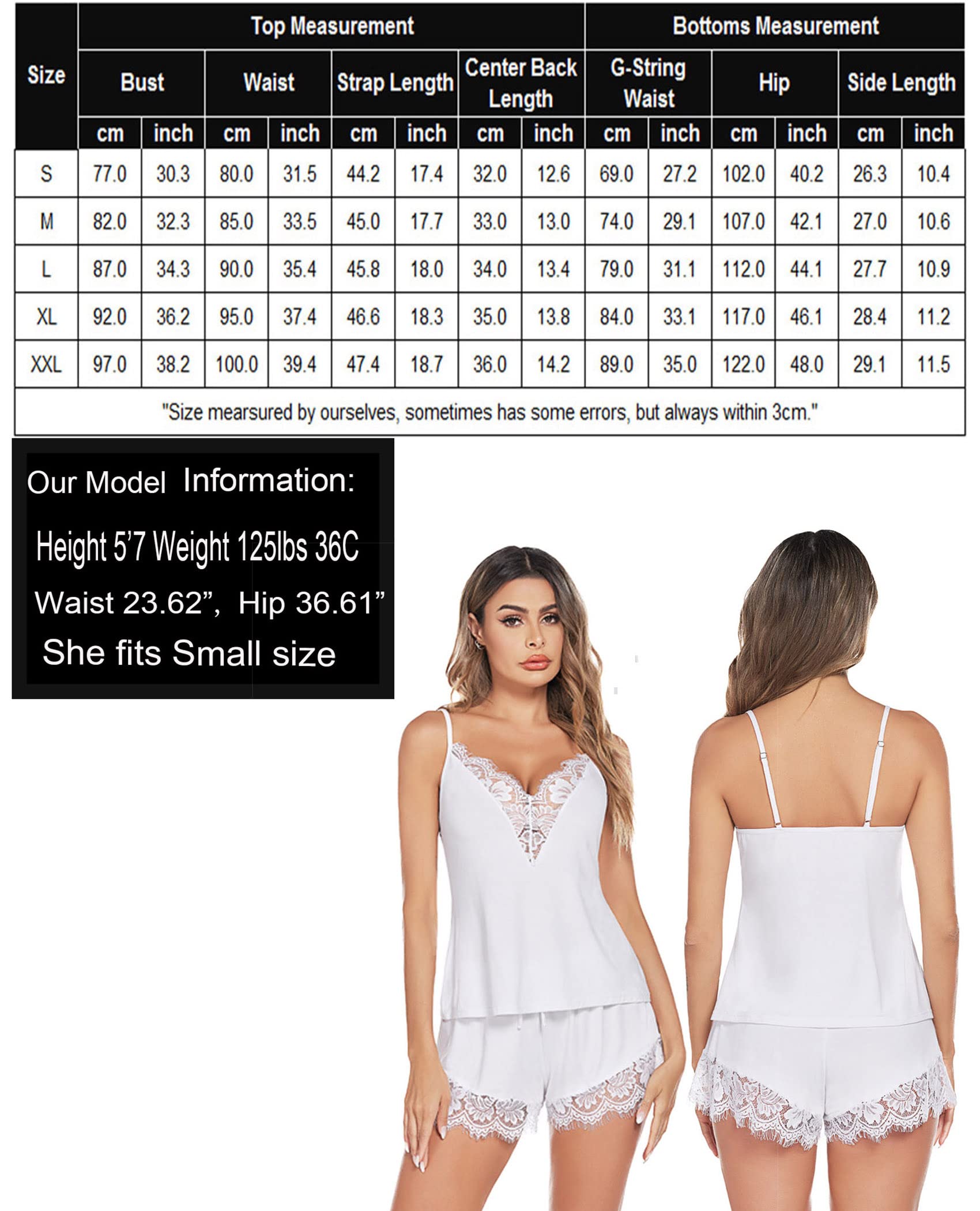 【Package Content】: 1 x Cami Pajama Top 1 x Lace Trim Pajama Shorts