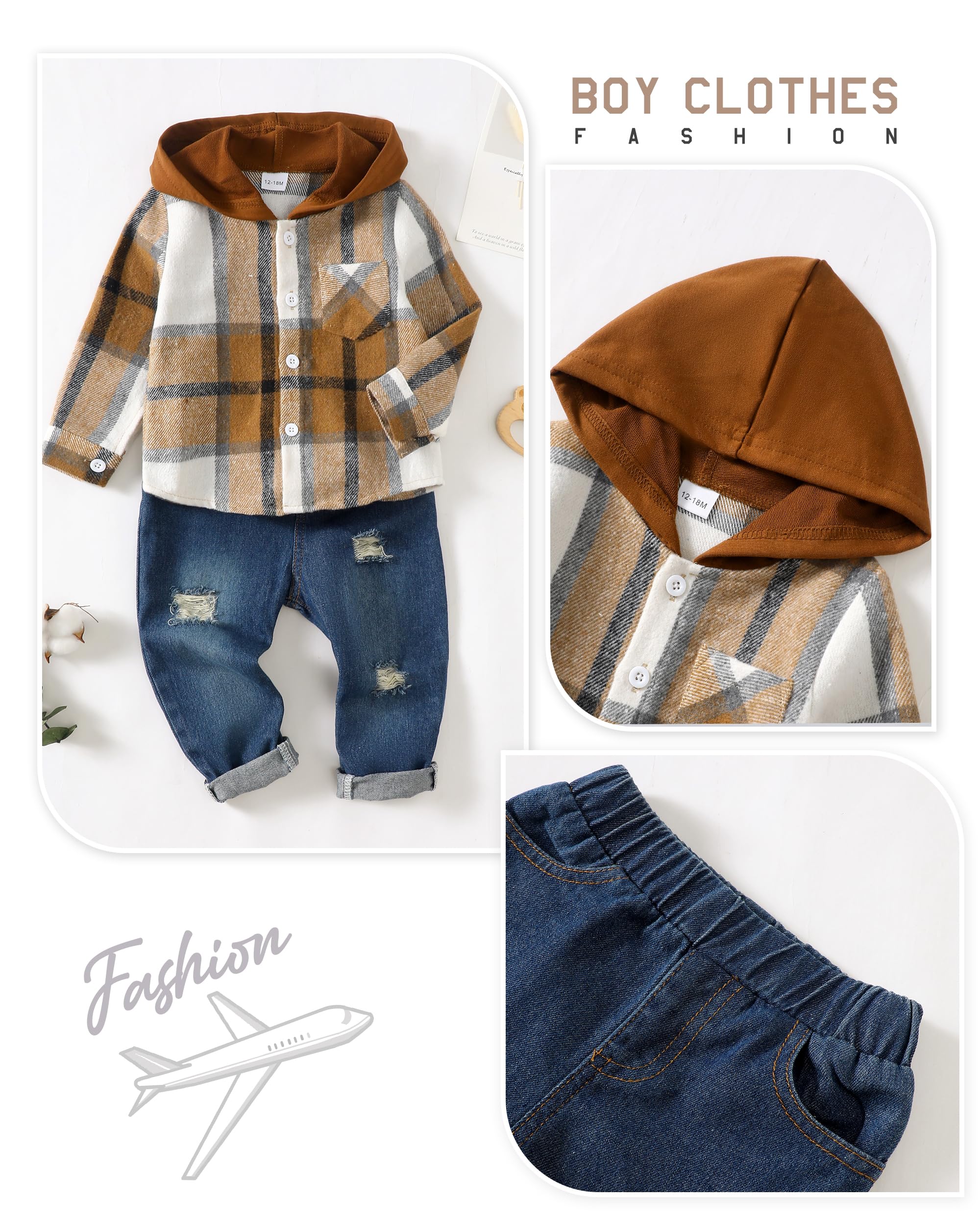 Description Style: 2PCS cute infant boy clothes fall winter Material: Cotton blend, comfy fabric Age: 12 months to 4t, little boy outfits fall Season: Suitable for fall and winter casual wearing