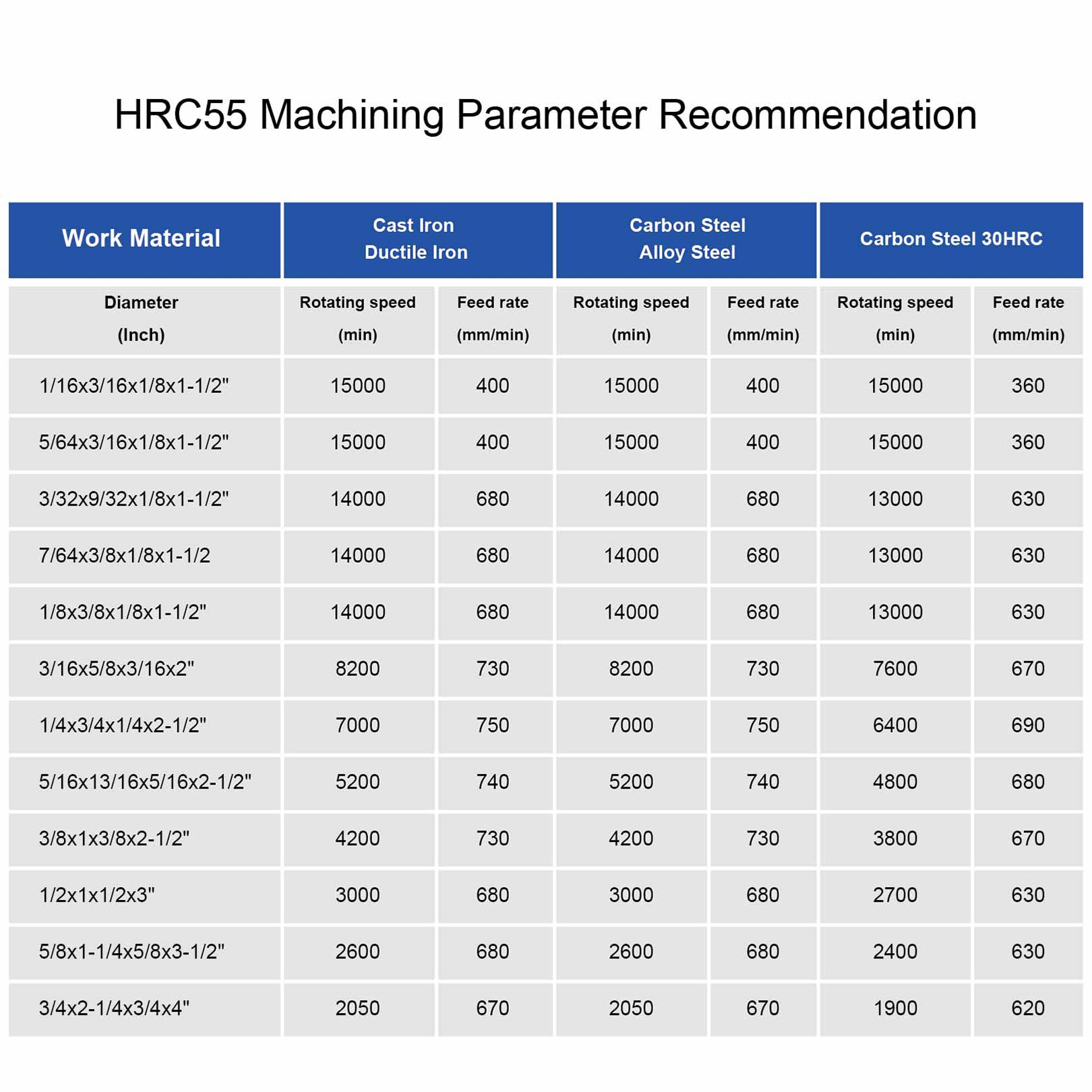 Application: AYCHOLIZ End mill bits can process the most general steel material including No.45 steel, P20, carbon steel alloy steel(up to HRC45), alloy steel(HRC50), cast iron(HRC35 ~ 45), etc. Gneral suits for soft material roughing, also can be used for semi-finishing and finishing, side milling, slot milling,step milling, etc.