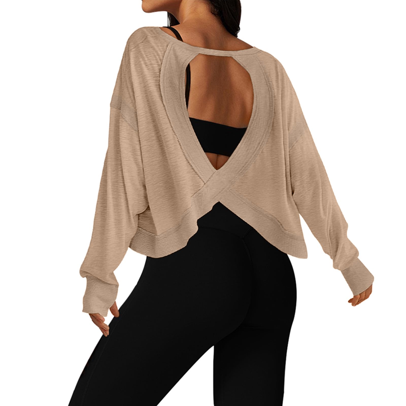 Features: Slight crop, shorter sides, wide neckline, open-cut back and ribbed wrist detail, the open back tops for women is fashionable and sexy, which increases the breathability, effectively dissipates body heat, and keeps cool and comfortable