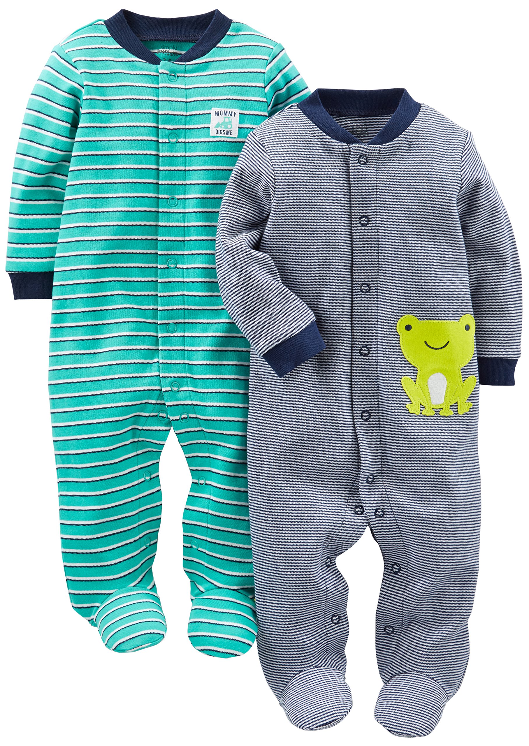 Description Full-zip closures promise easier outfit changes in these footed sleep-and-play suits featuring whimsical designs.