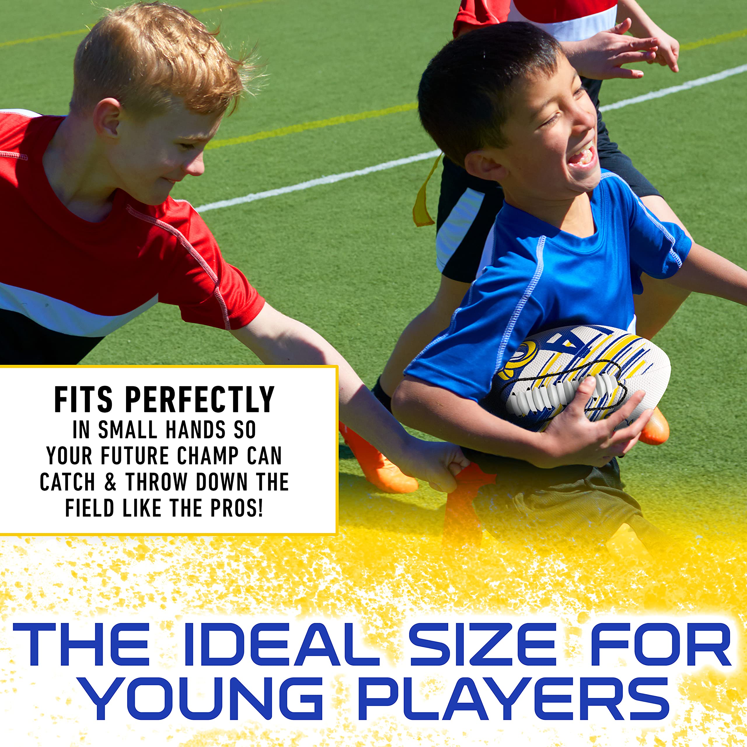 PERFECT SIZE: This 8.5" mini football is the ideal size to fit in a young players hands so your future champ can catch and throw down field like the Pros!