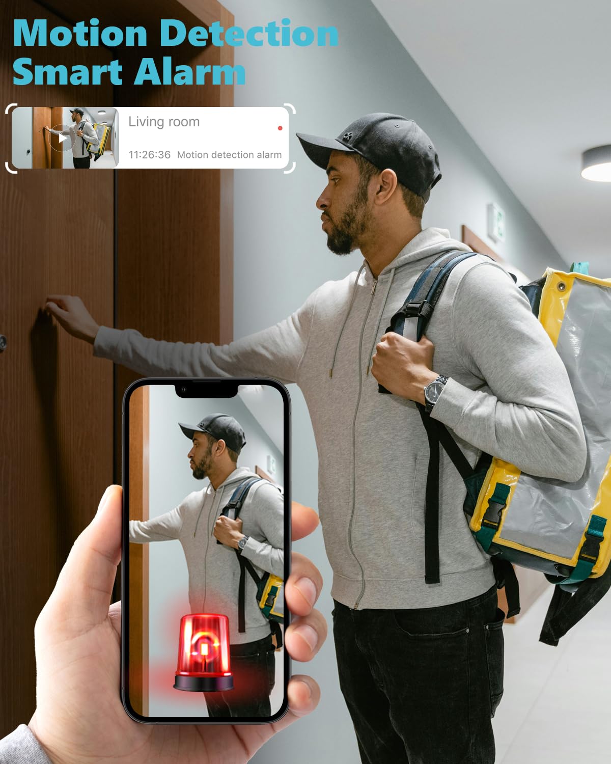 AI Motion Detection & Real-time Alerts: Stay informed with real-time motion detection alerts. Our wireless security camera employs smart technology to send immediate notifications to your phone, keeping you updated on any unusual activity and enhancing overall security.